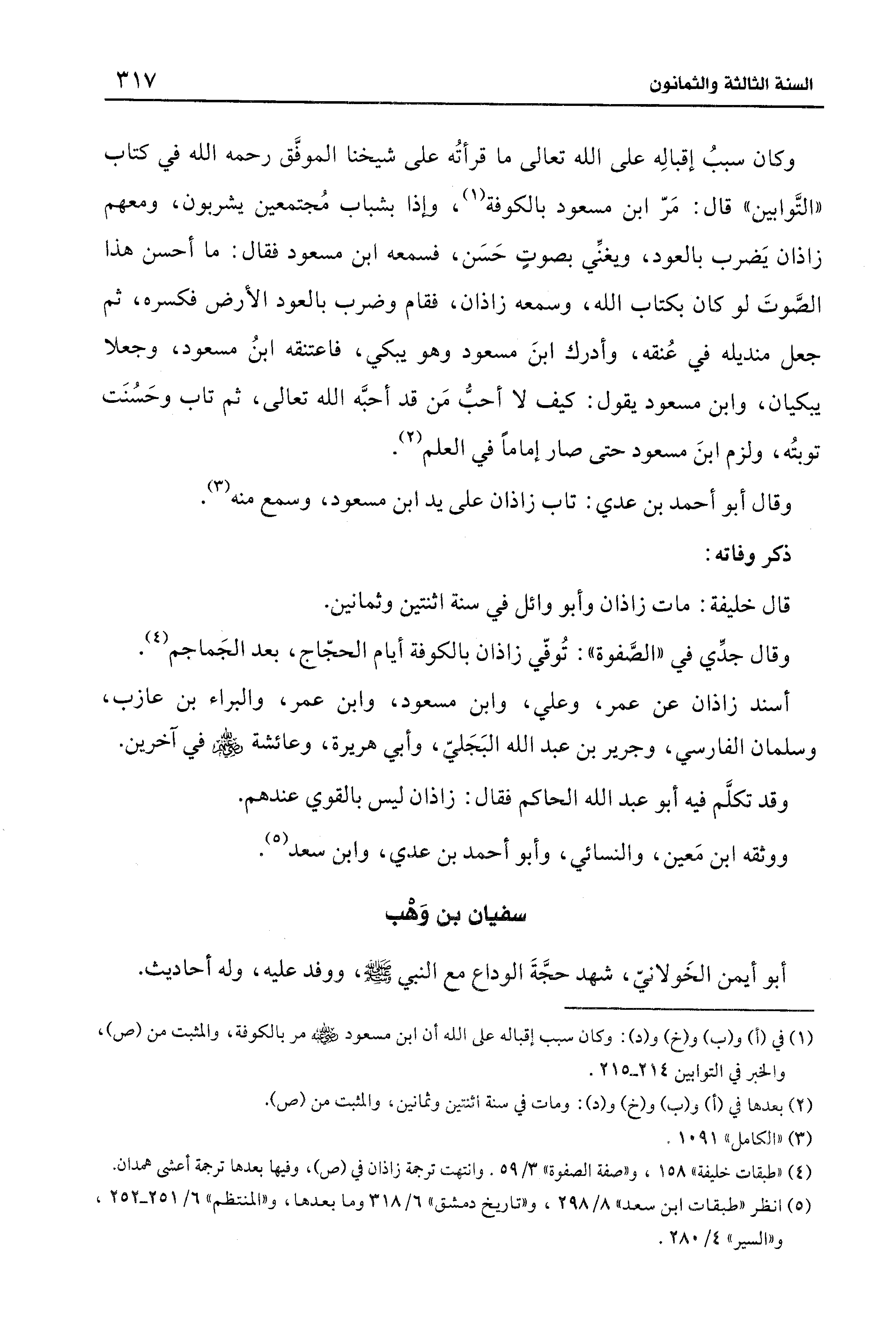 (¬4) "طبقات خليفة "158، و"صفة الصفوة" 3/ 59. وانتهت ترجمه زاذان في (ص)، وفيها بعدها ترجمة أعشى همدان.