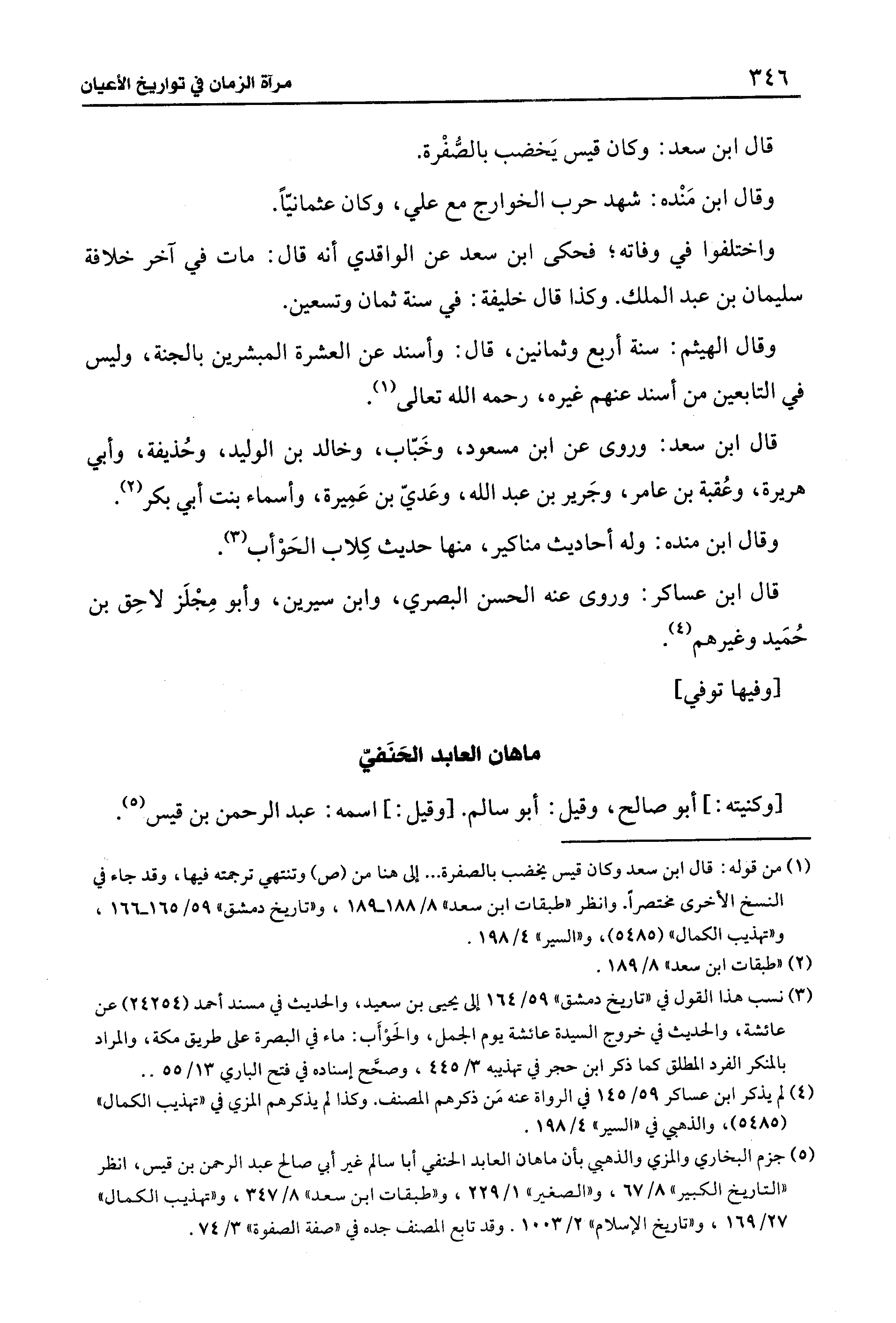 (¬5) جزم البخاري والمزي والذهبي بأن ماهان العابد الحنفي أبا سالم غير أبي صالح عبد الرحمن بن قيس، انظر "التاريخ الكبير" 8/ 67، و "الصغير" 1/ 229، و "طبقات ابن سعد" 8/ 347، و"تهذيب الكمال" 27/ 169، و "تاريخ الإِسلام" 2/ 1003. وقد تابع المصنف جده في "صفة الصفوة" 3/ 74.