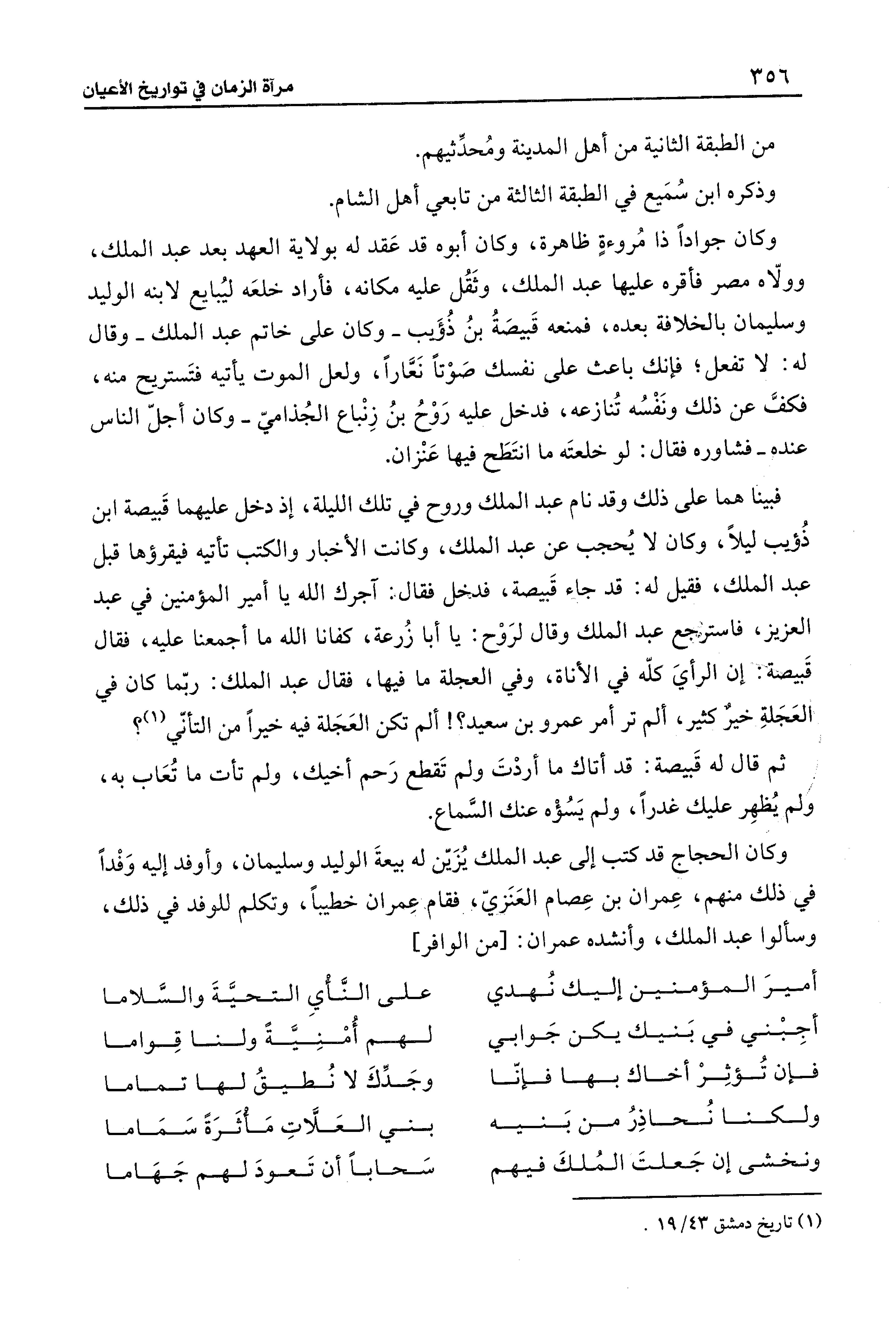 وكان الحجاج قد كتب إلى عبد الملك يُزَيّن له بيعةَ الوليد وسليمان، وأوفد إليه وَفدًا في ذلك منهم، عِمران بن عِصام العَنَزيّ، فقام عِمران خطيبًا، وتكلم للوفد في ذلك، وسألوا عبد الملك، وأنشده عمران: [من الوافر]