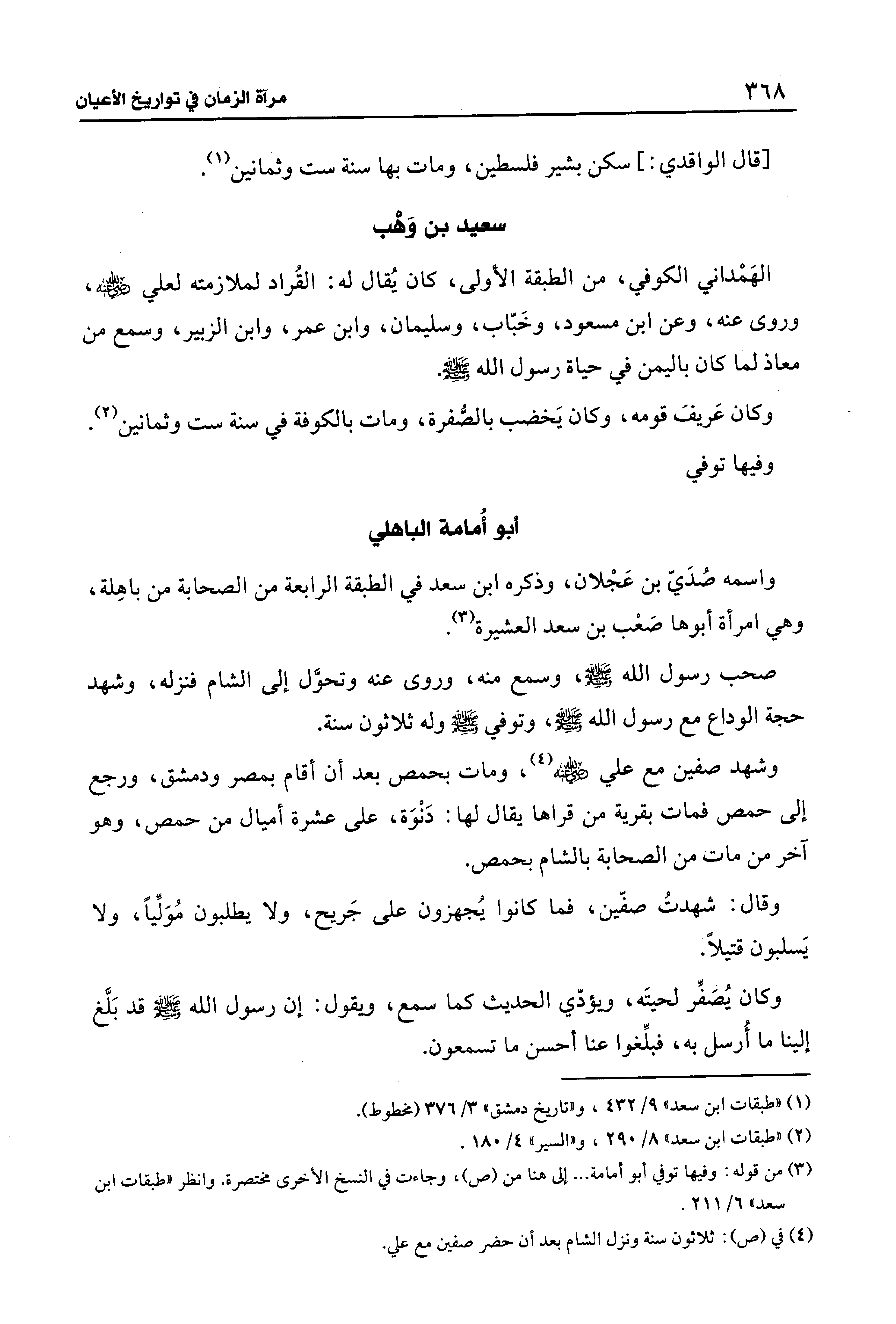 (¬1) "طبقات ابن سعد" 9/ 432، و "تاريخ دمشق" 3/ 376 (مخطوط).