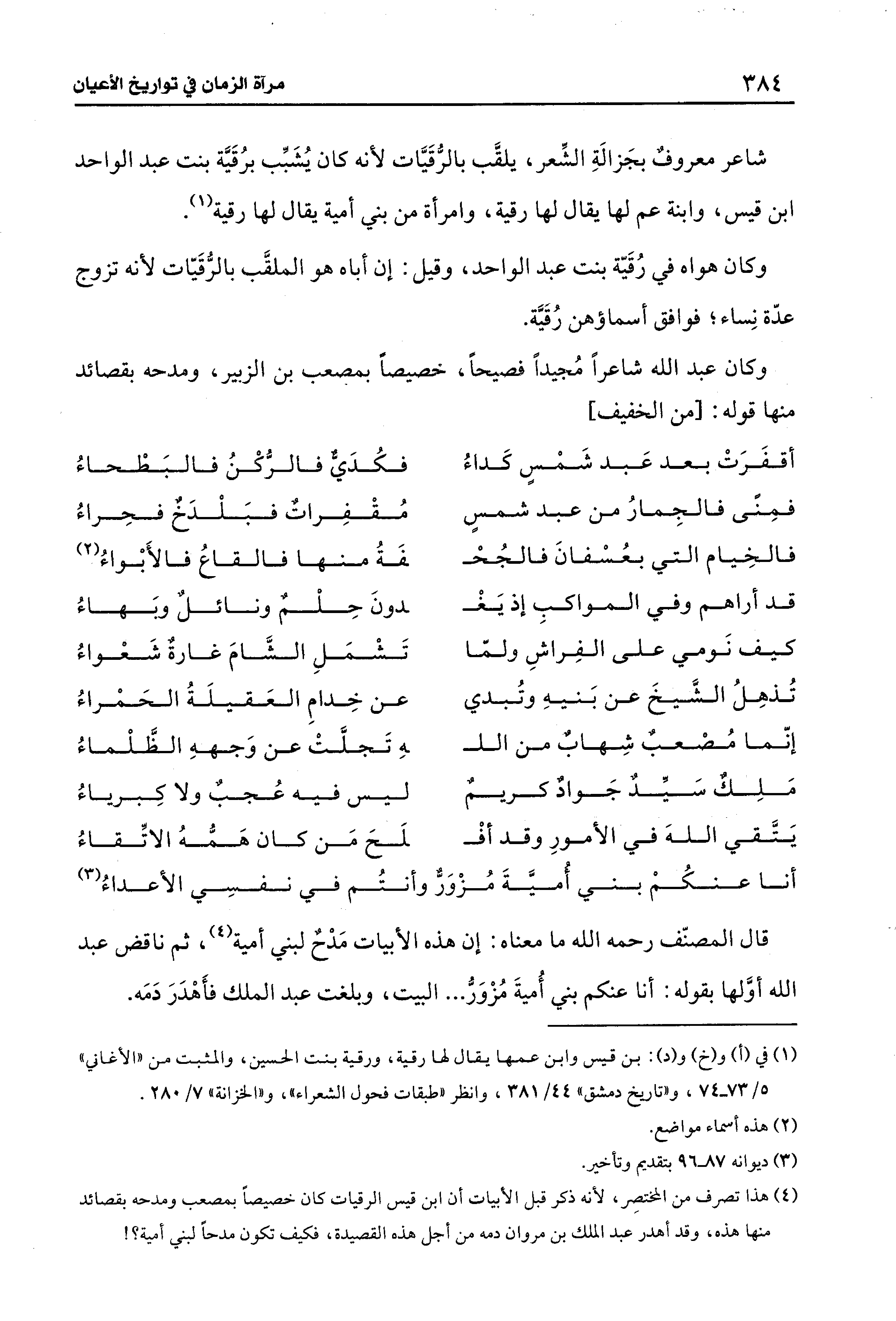 (¬4) هذا تصرف من المختصِر، لأنه ذكر قبل الأبيات أن ابن قيس الرقيات كان خصيصًا بمصعب ومدحه بقصائد منها هذه، وقد أهدر عبد الملك بن مروان دمه من أجل هذه القصيدة، فكيف تكون مدحًا لبني أمية؟ !