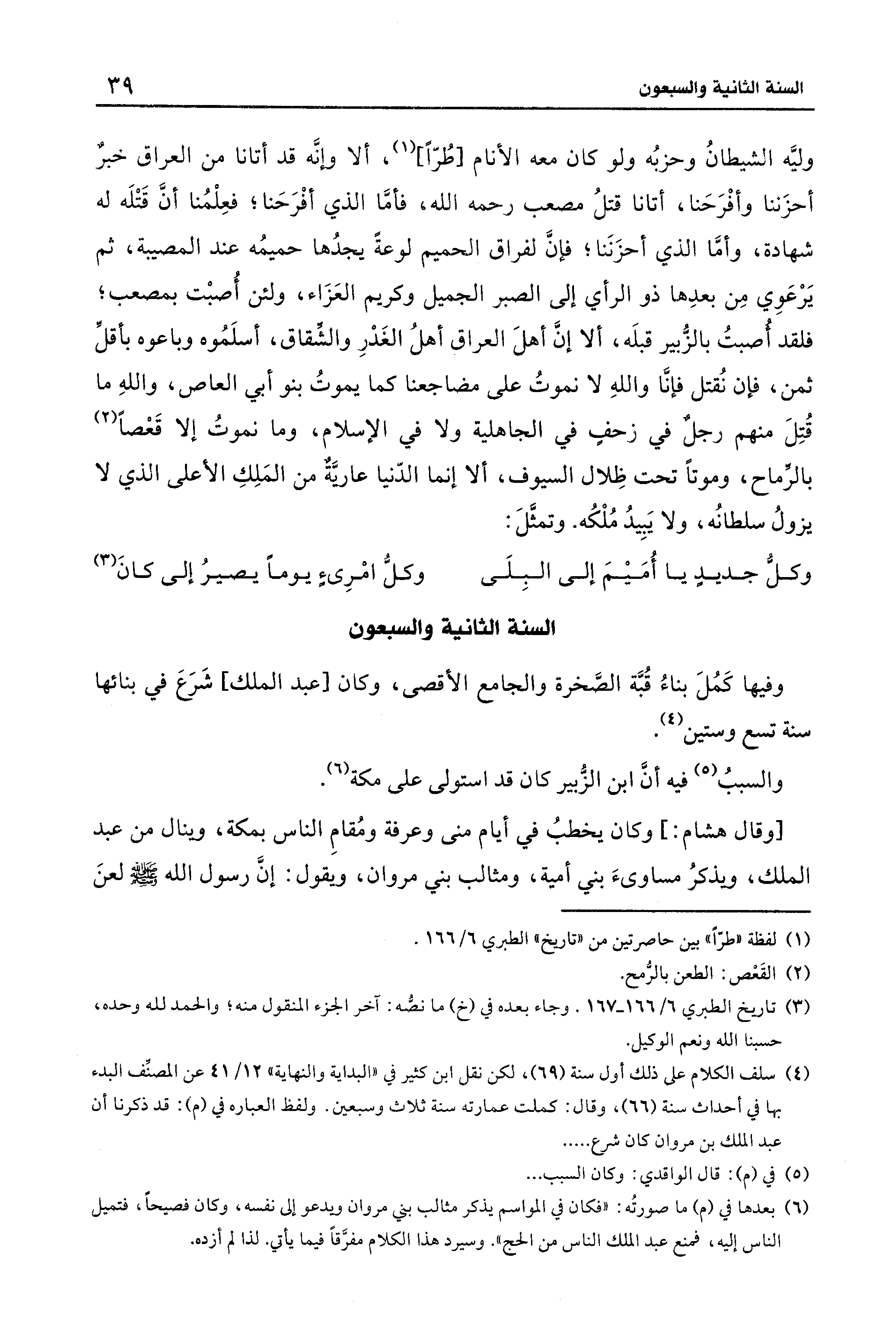 (¬4) سلف الكلام على ذلك أول سنة (69)، لكن نقل ابن كثير في "البداية والنهاية" 12/ 41 عن المصنِّف البدء بها في أحداث سنة (66)، وقال: كملت عمارته سنة ثلاث وسبعين. ولفظ العباره في (م): قد ذكرنا أن عبد الملك بن مروان كان شرع. .