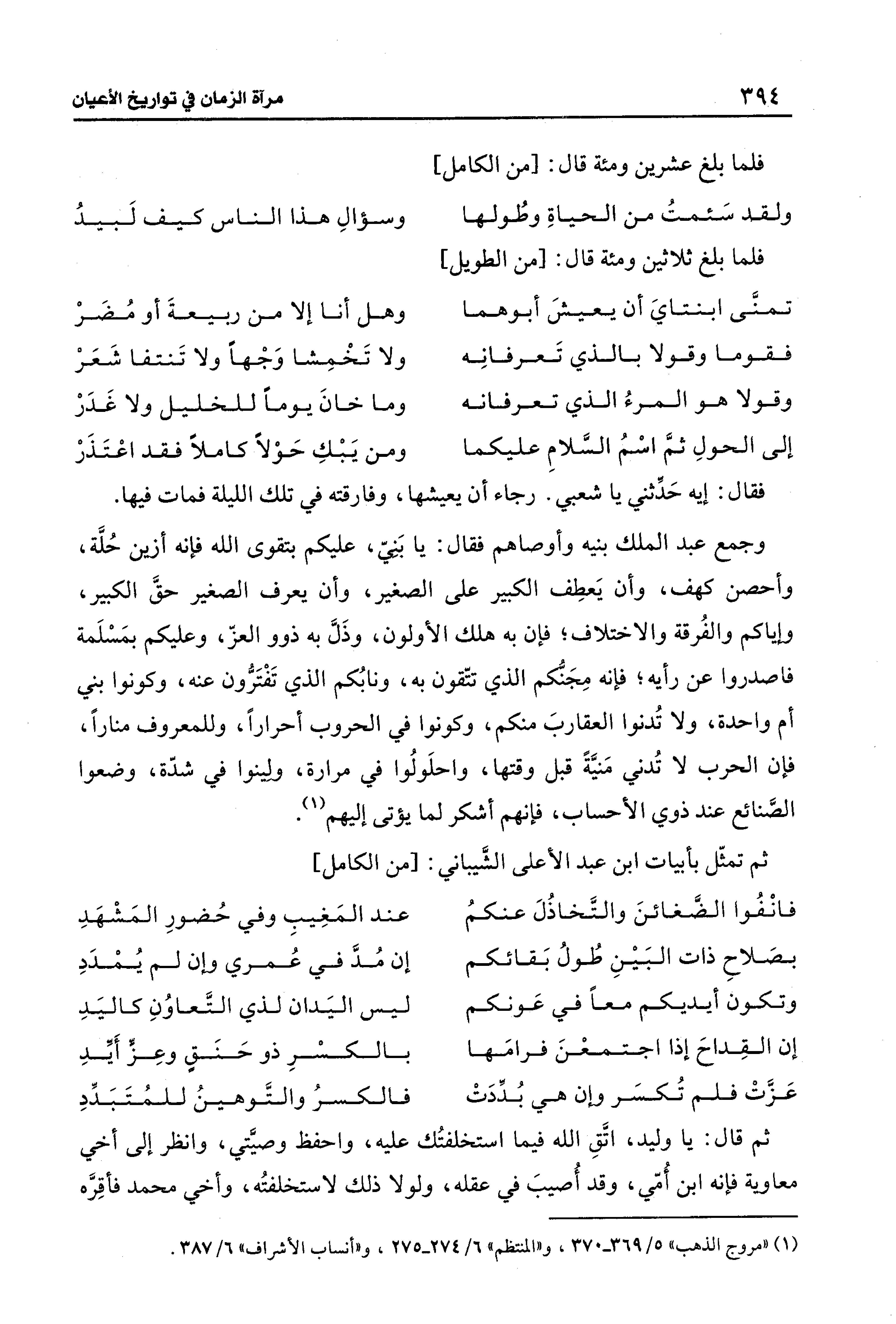ثم تمثّل بأبيات ابن عبد الأعلى الشَّيباني: [من الكامل]