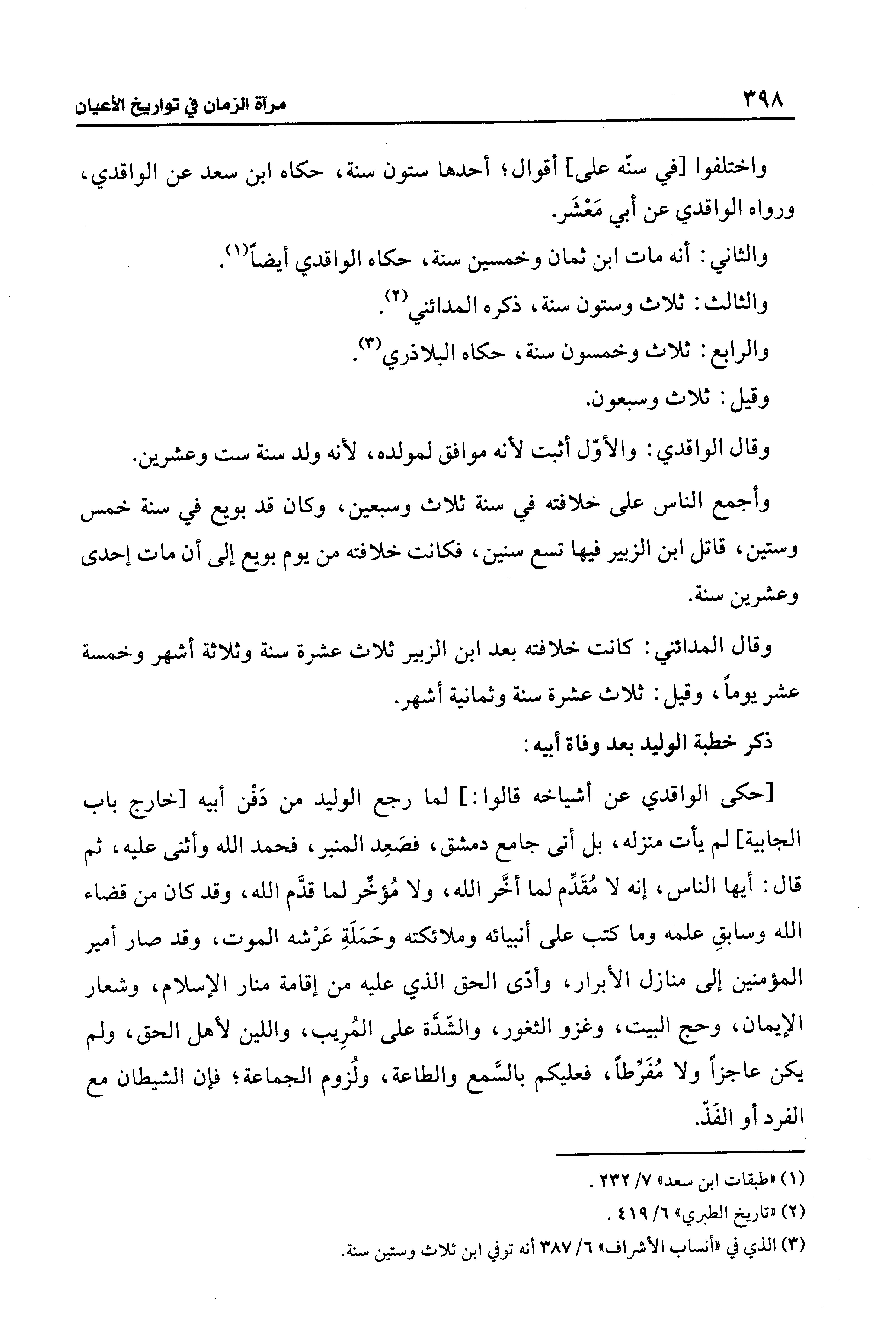 (¬3) الذي في "أنساب الأشراف" 6/ 387 أنه توفي ابن ثلاث وستين سنة.