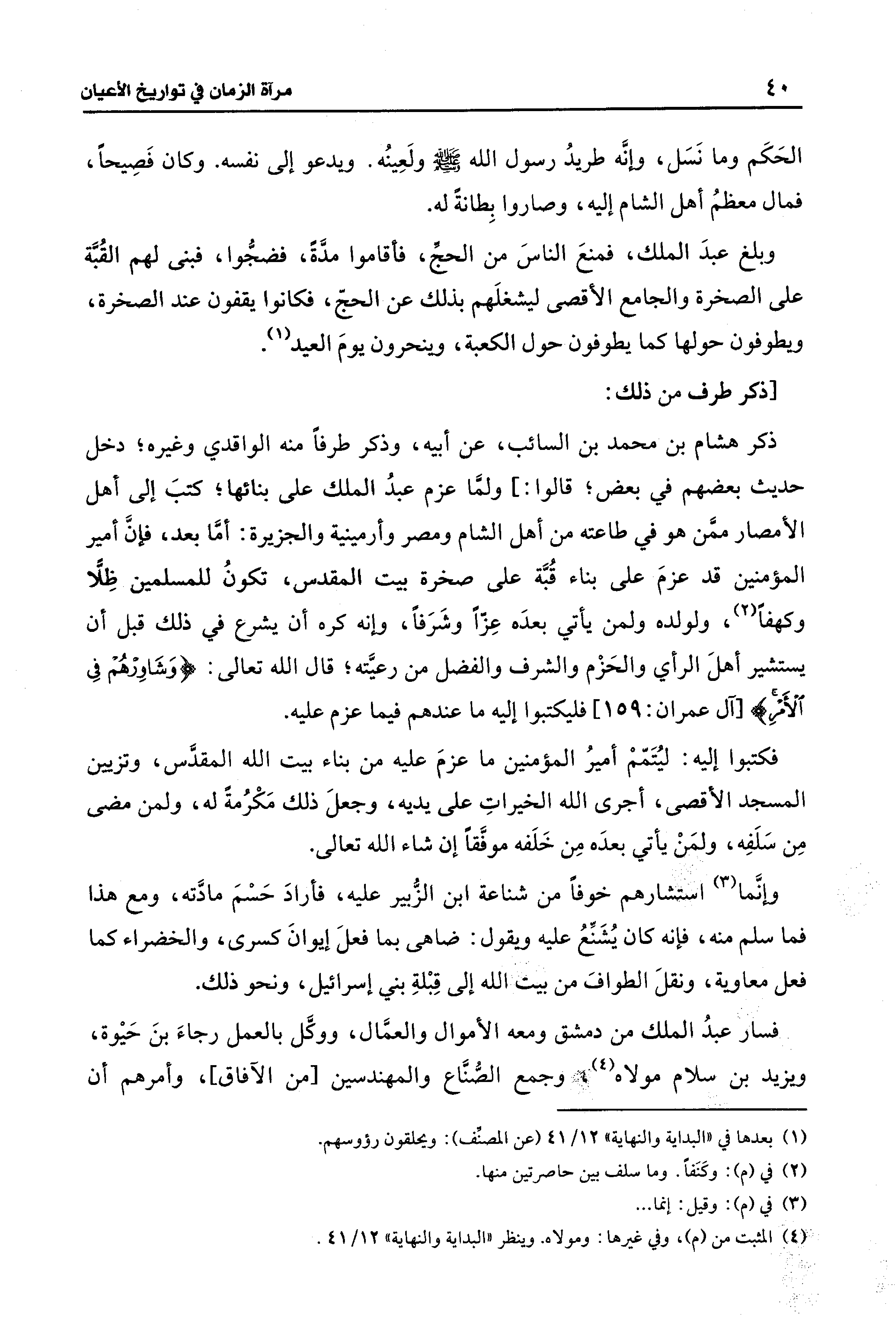 وبلغ عبدَ الملك، فمنعَ الناسَ من الحجِّ، فأقاموا مدَّةً، فضجُّوا، فبنى لهم القُبَّة على الصخرة والجامع الأقصى ليشغلَهم بذلك عن الحجِّ، فكانوا يقفون عند الصخرة، ويطوفون حولها كما يطوفون حول الكعبة، وينحرون يومَ العيد (¬1).