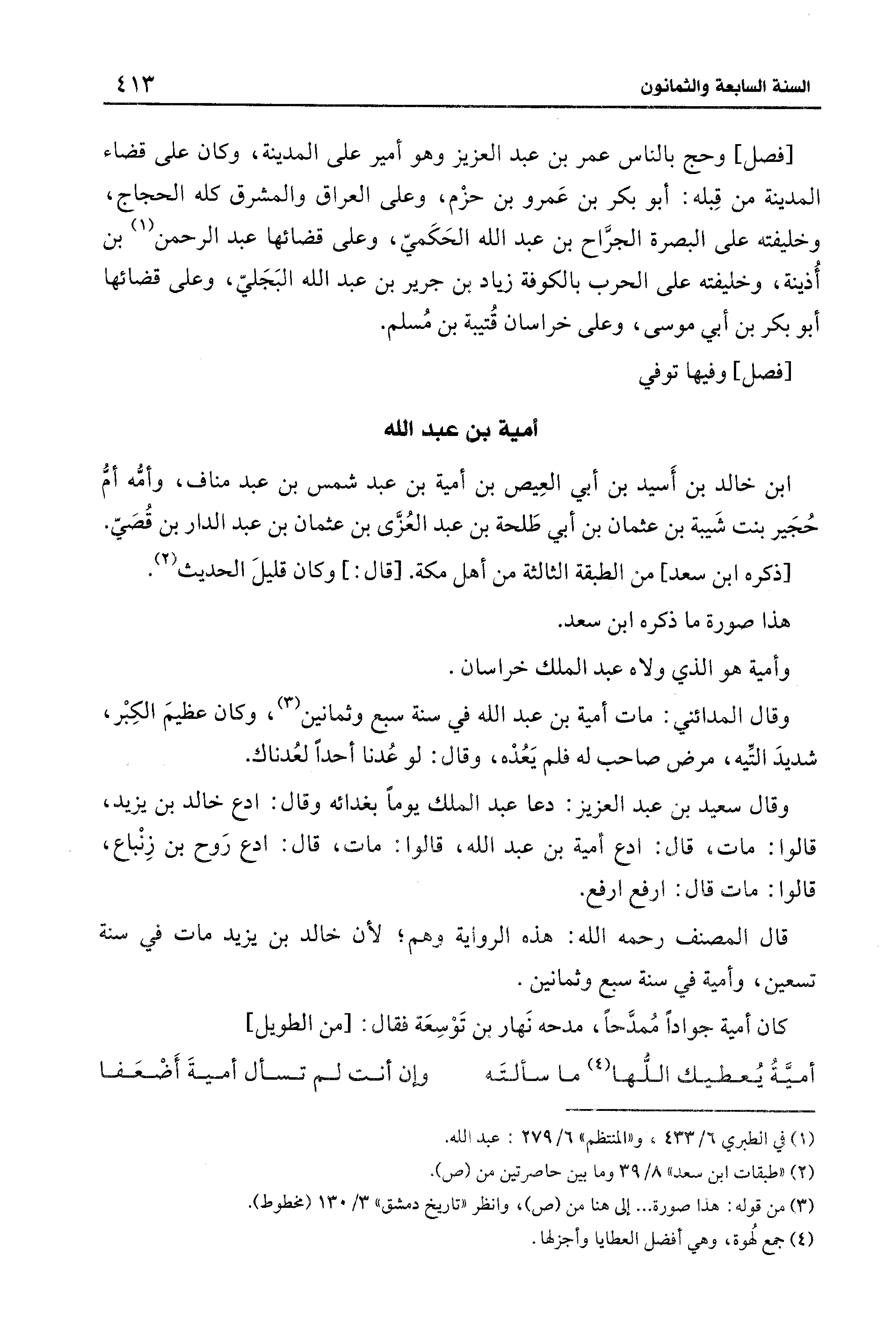 وقال المدائي: مات أمية بن عبد الله في سنة سبع وثمانين (¬3)، وكان عظيمَ الكِبر، شديدَ التِّيه، موض صاحب له فلم يَعُدْه، وقال: لو عُدنا أحدًا لعُدناك.