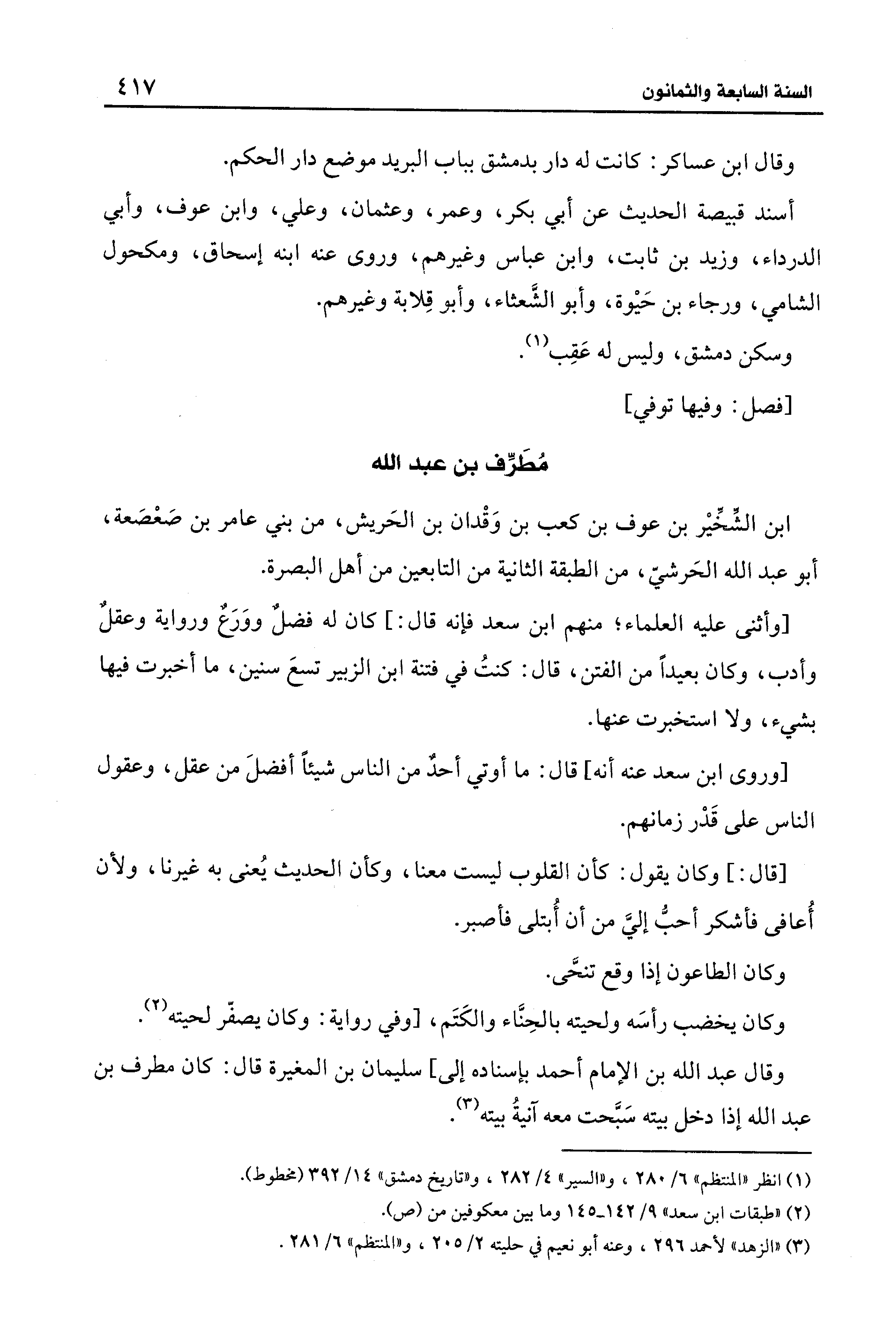 (¬1) انظر "المنتظم" 6/ 280، و"السير" 4/ 282، و"تاريخ دمشق" 14/ 392 (مخطوط).