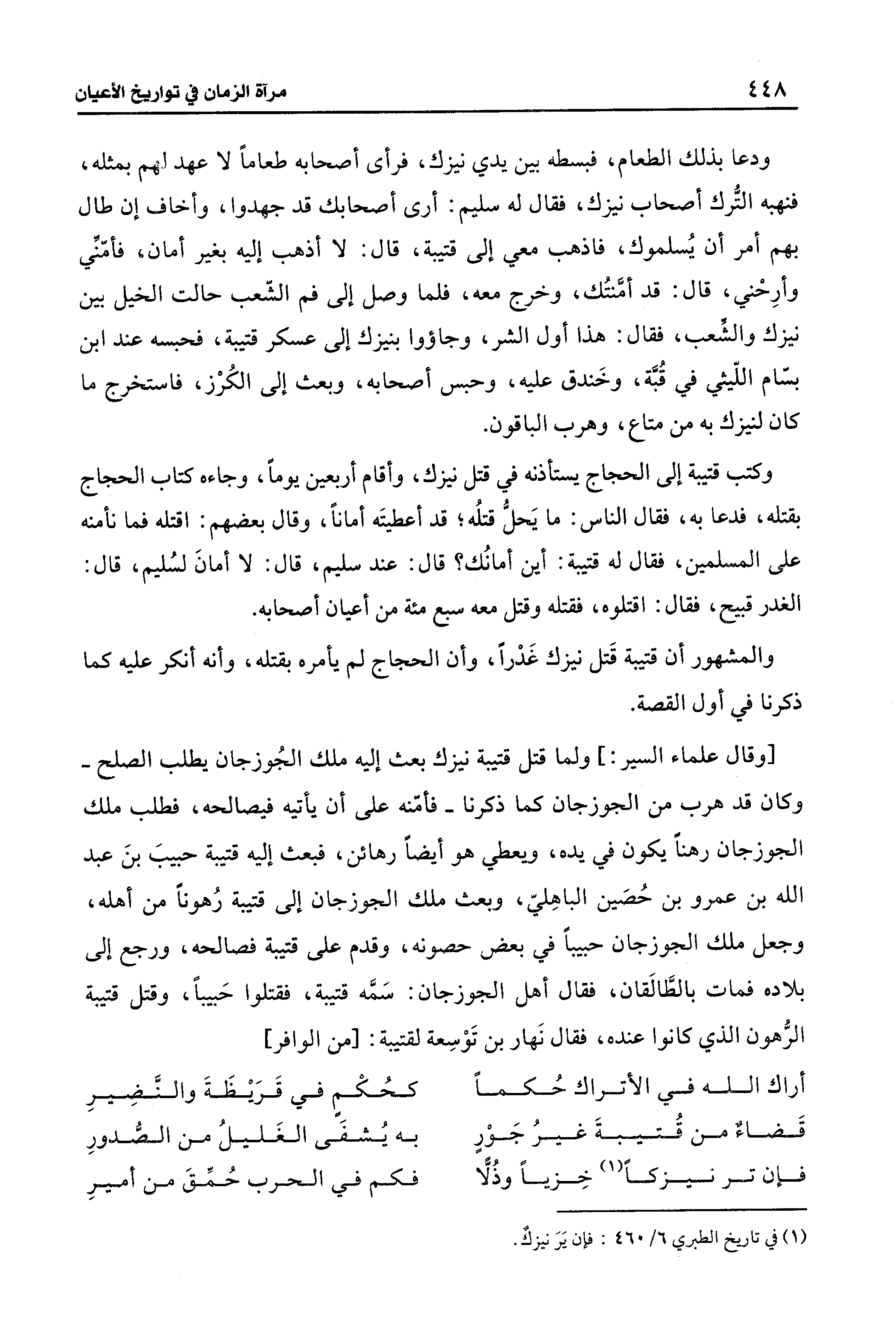 والمشهور أن قتيبة قَتل نيزك غَدْرًا، وأن الحجاج لم يأمره بقتله، وأنه أنكر عليه كما ذكرنا في أول القصة.