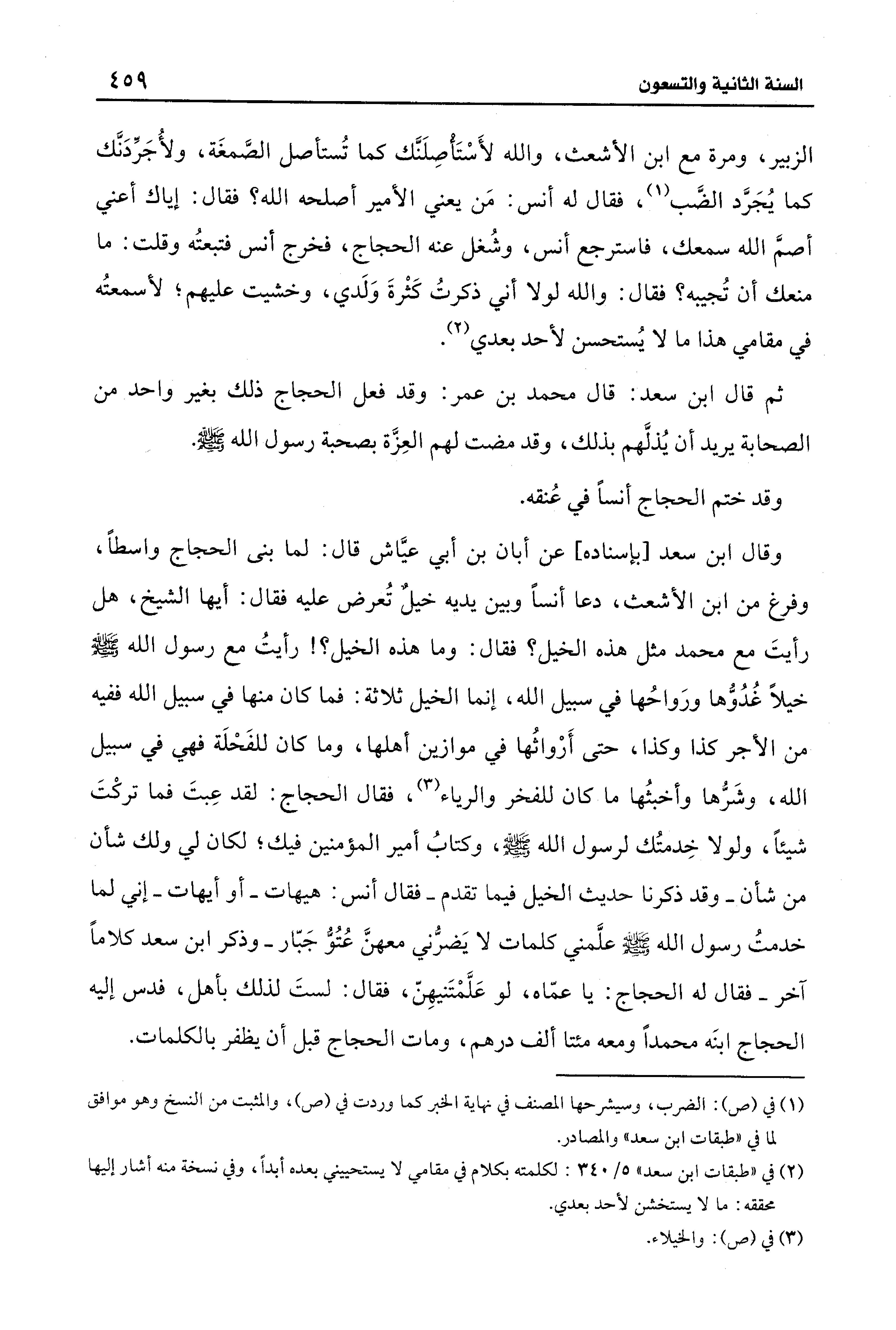 ثم قال ابن سعد: قال محمَّد بن عمر: وقد فعل الحجاج ذلك بغير واحد من الصَّحَابَة يريد أن يُذلَّهم بذلك، وقد مضت لهم العِزَّة بصحبة رسول الله - صلى الله عليه وسلم -.
