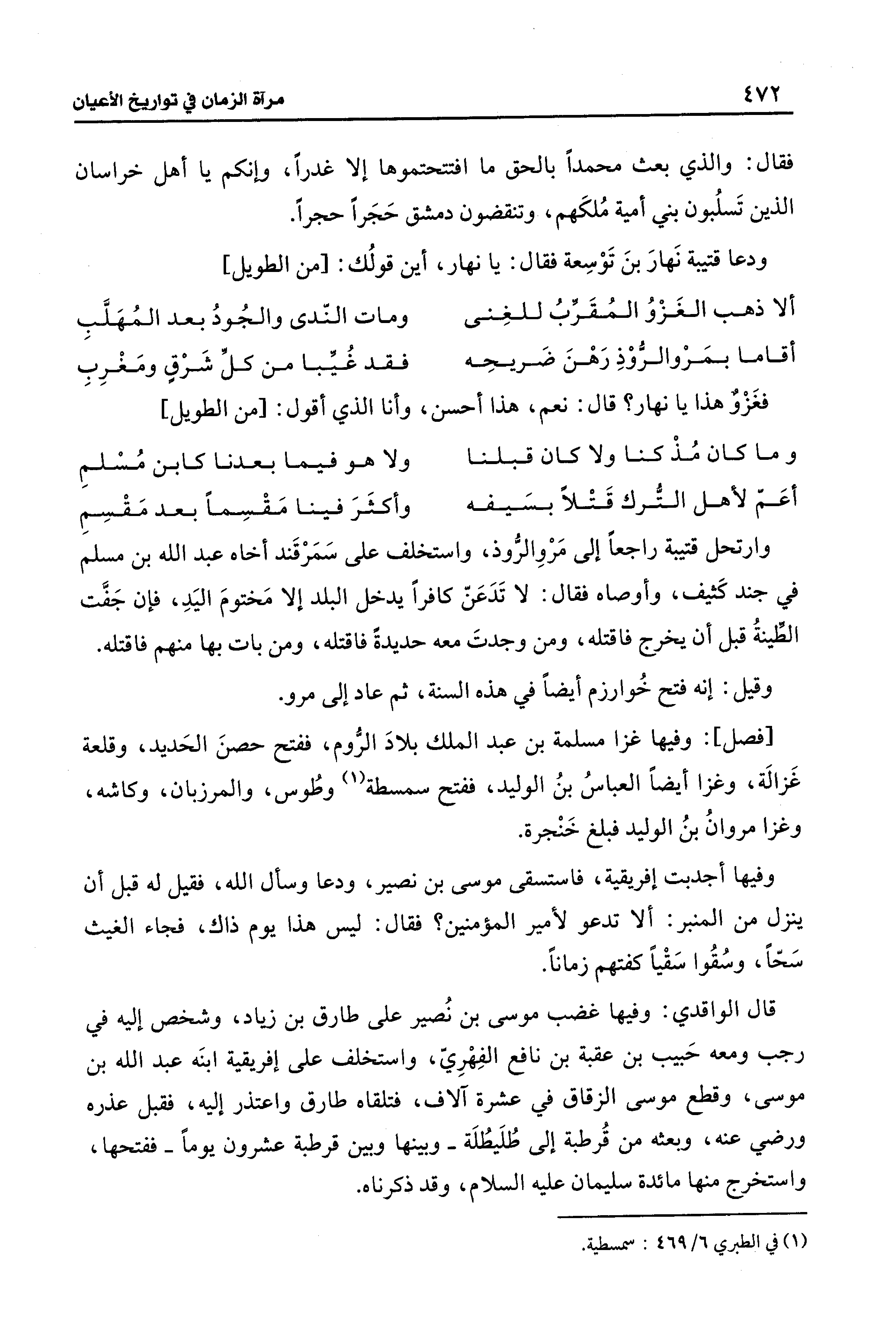 [فصل]: وفيها غزا مسلمة بن عبد الملك بلادَ الرُّوم، ففتح حصنَ الحَديد، وقلعة غَزالة، وغزا أيضًا العباسُ بنُ الوليد، ففتح سمسطة (¬1) وطُوس، والمرزبان، وكاشه، وغزا مروانُ بنُ الوليد فبلغ خَنْجرة.