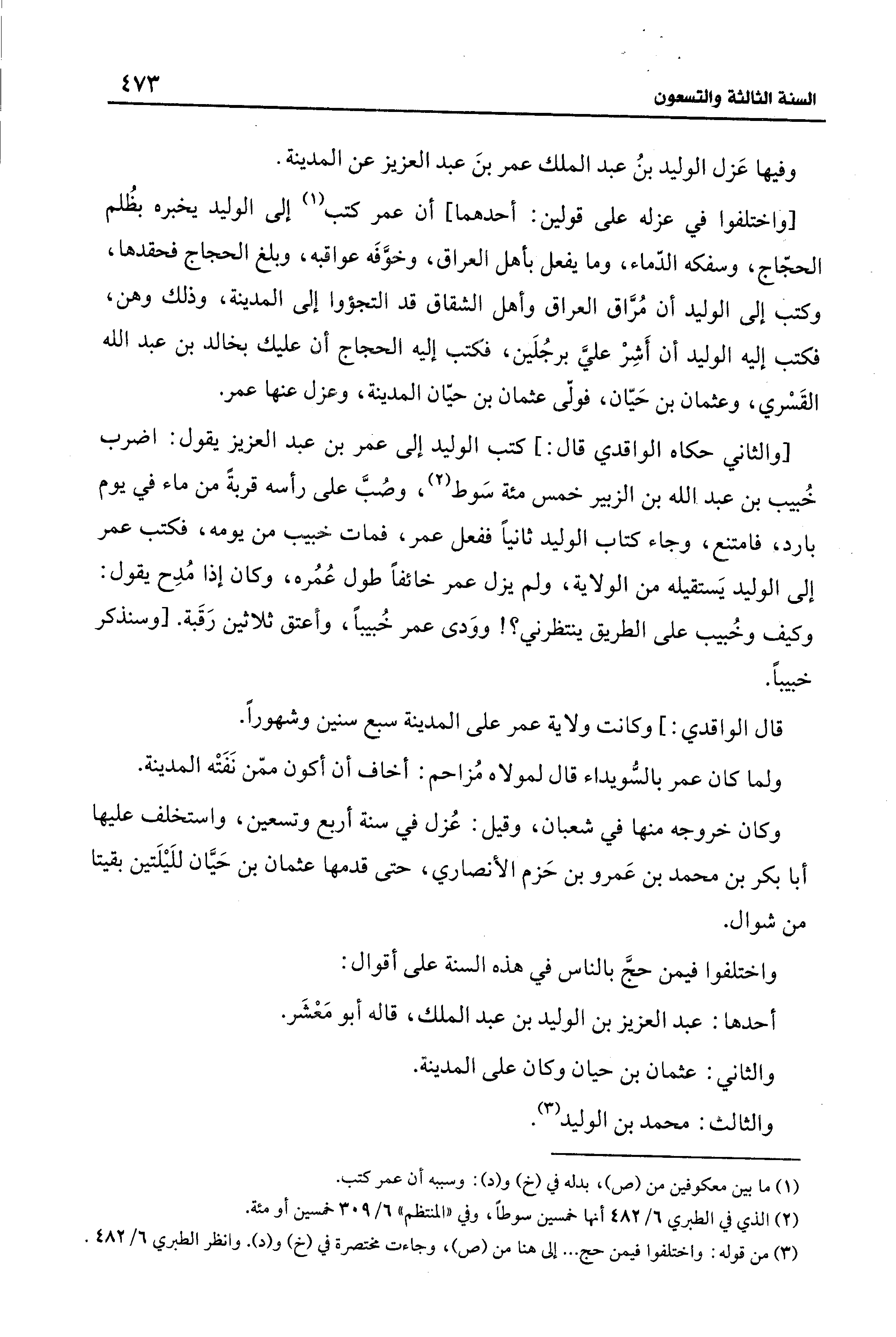 وفيها عَزل الوليد بنُ عبد الملك عمر بنَ عبد العزيز عن المدينة.