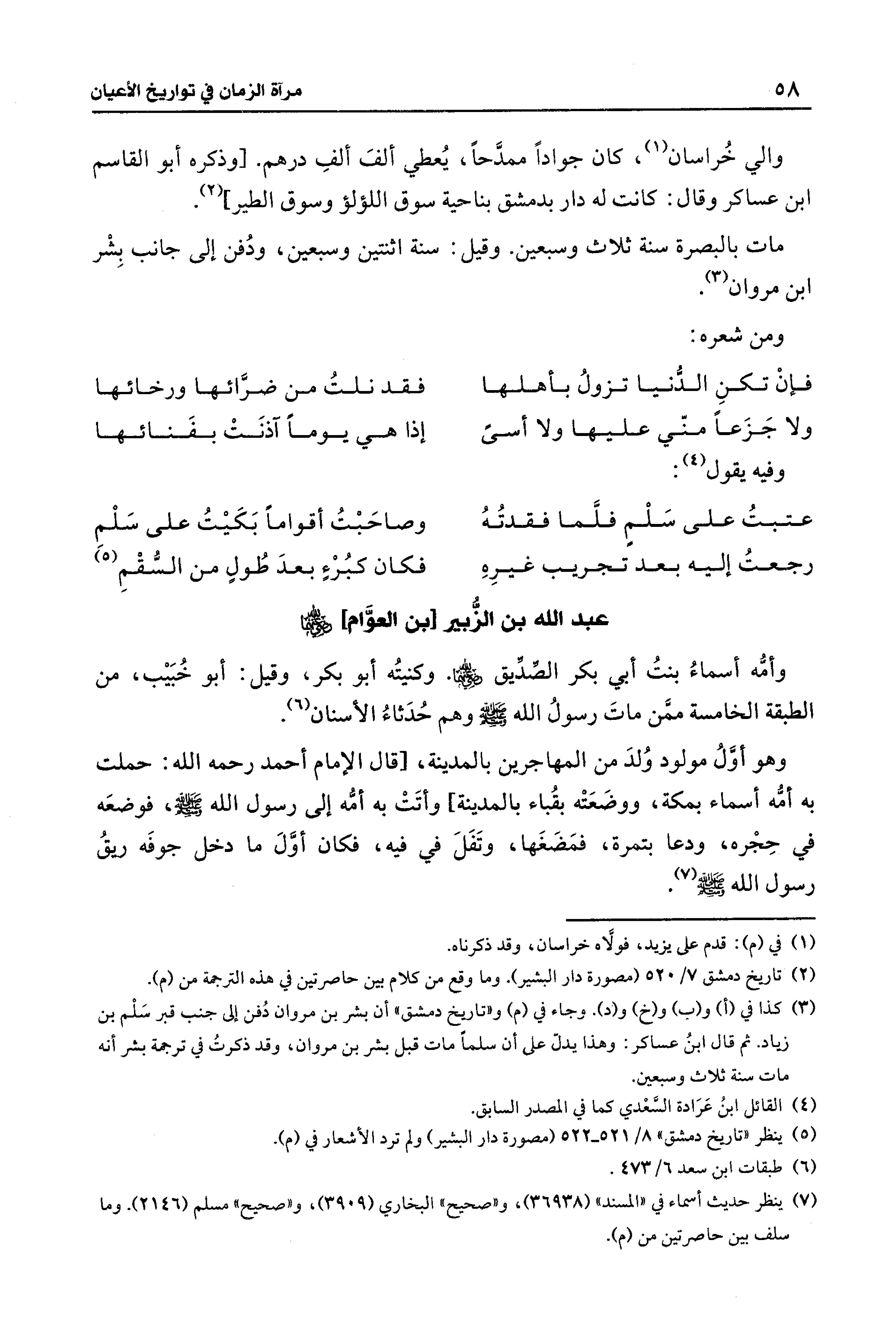 (¬5) ينظر "تاريخ دمشق" 8/ 521 - 522 (مصورة دار البشير) ولم ترد الأشعار في (م).