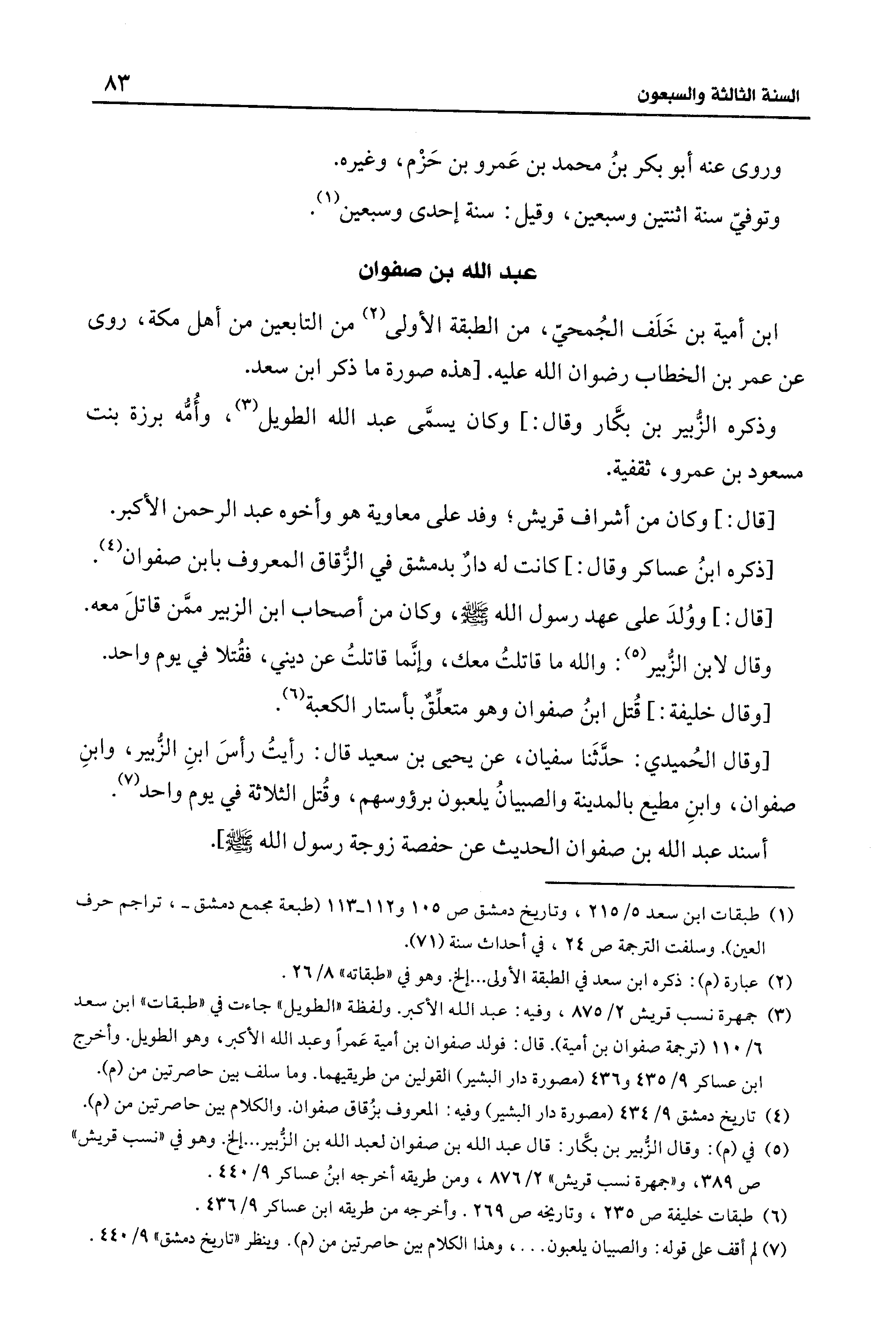 (¬1) طبقات ابن سعد 5/ 215، وتاريخ دمشق ص 155 و 112 - 113 (طبعة مجمع دمشق-، تراجم حرف العين). وسلفت الترجمة ص 24، في أحداث سنة (71).