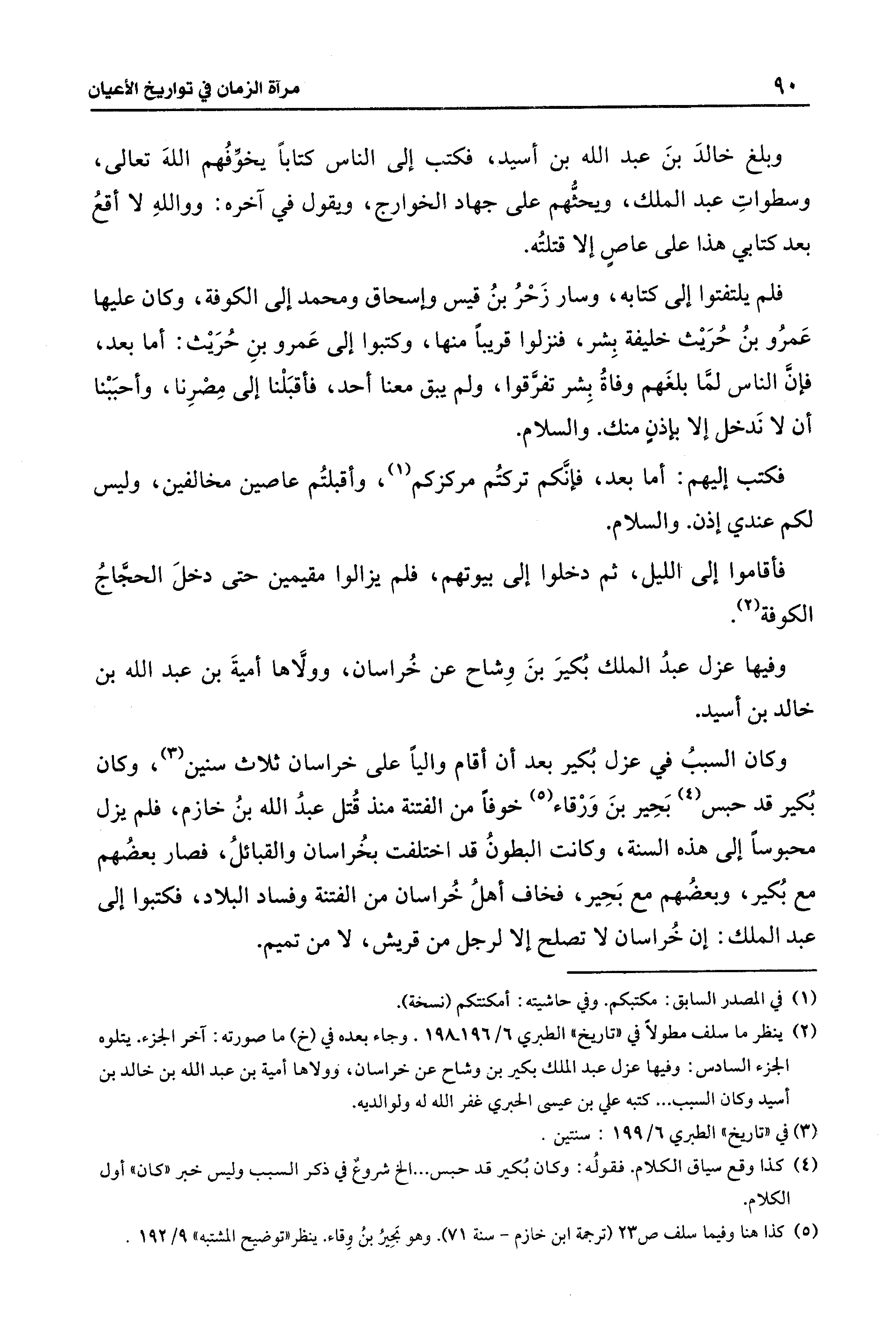 (¬2) ينظر ما سلف مطولًا في "تاريخ" الطبري 6/ 196 - 198. وجاء بعده في (خ) ما صورته: آخر الجزء. يتلوه الجزء السادس: وفيها عزل عبد الملك بكير بن وشاح عن خراسان، وولاها أمية بن عبد الله بن خالد بن أسيد وكان السبب ... كتبه علي بن عيسى الحبري غفر الله له ولوالديه.