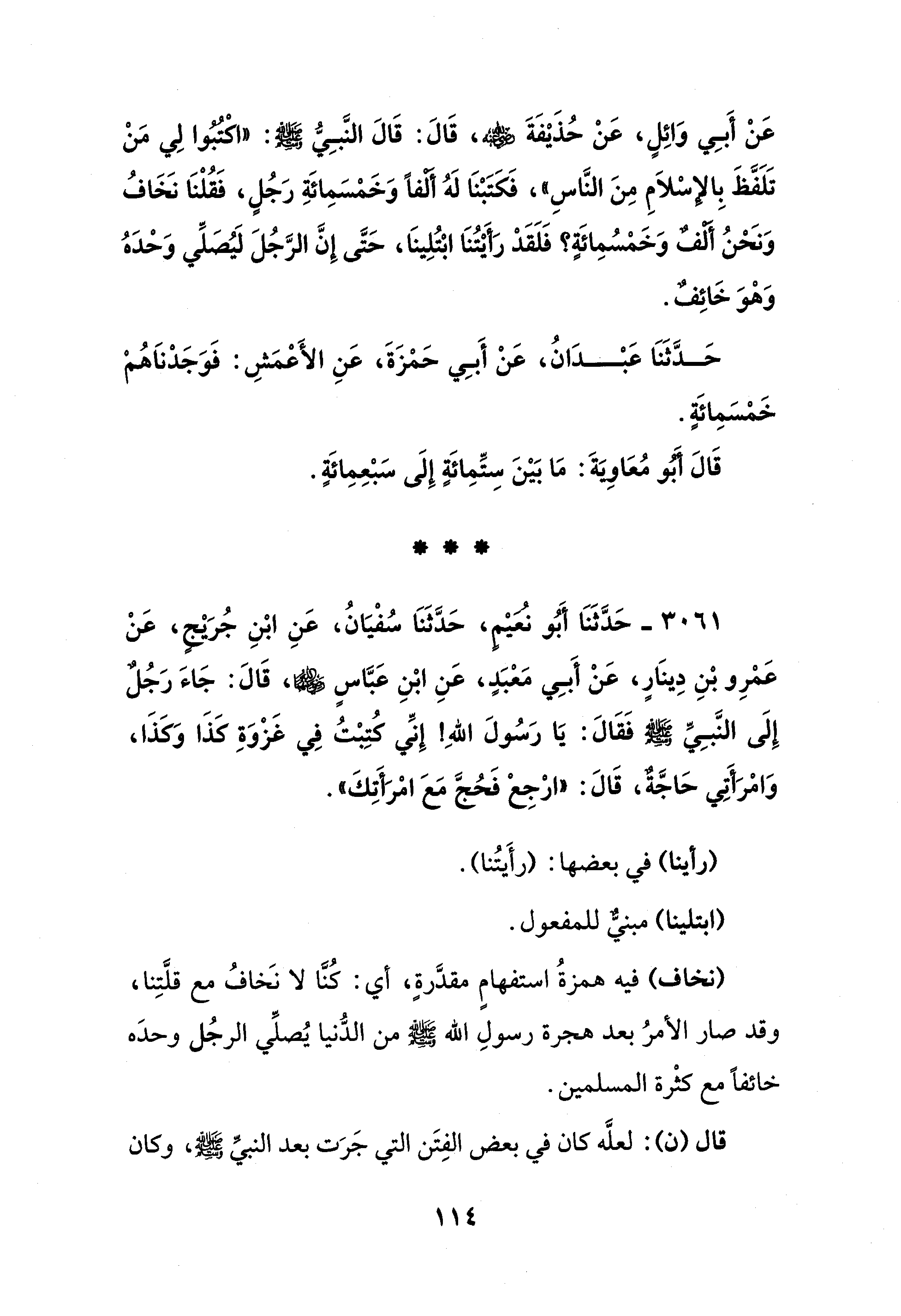 3061 - حَدَّثَنَا أَبُو نُعَيْمٍ، حَدَّثَنَا سُفْيَانُ، عَنِ ابْنِ جُرَيْجٍ، عَنْ عَمْرِو بْنِ دِينَارٍ، عَنْ أَبِي مَعْبَدٍ، عَنِ ابْنِ عَبَّاسٍ، قَالَ: جَاءَ رَجُلٌ إِلَى النَّبِيِّ - صلى الله عليه وسلم - فَقَالَ: يَا رَسُولَ اللهِ! إِنِّي كُتِبْتُ فِي غَزْوَةِ كَذَا وَكَذَا، وَامْرَأَتِي حَاجَّةٌ، قَالَ: "ارْجِعْ فَحُجَّ مَعَ امْرَأَتِكَ".