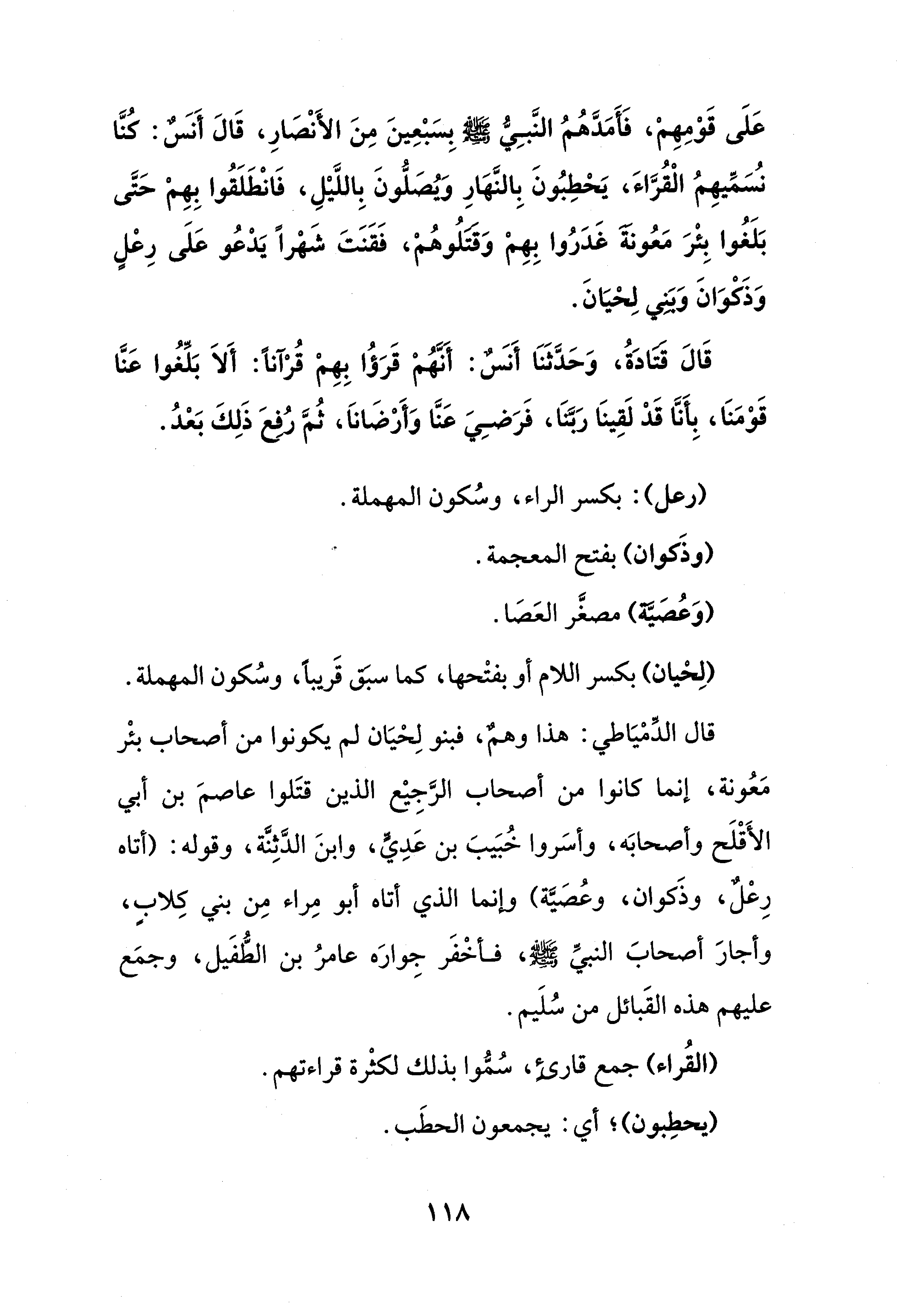 قال الدِّمْيَاطي: هذا وهمٌ، فبنو لِحْيَان لم يكونوا من أصحاب بئْر مَعُونة، إنما كانوا من أصحاب الرَّجِيْع الذين قتَلوا عاصمَ بن أبي الأَقْلَح وأصحابَه، وأسَروا خُبَيبَ بن عَدِيٍّ، وابنَ الدَّثِنَّة، وقوله: (أتاه رِعْلٌ، وذَكوان، وعُصَيَّة) وإنما الذي أتاه أبو مِراء مِن بني كِلابٍ، وأجارَ أصحابَ النبيِّ - صلى الله عليه وسلم -، فأخْفَر جِوارَه عامرُ بن الطُّفَيل، وجمَع عليهم هذه القَبائل من سُلَيم.