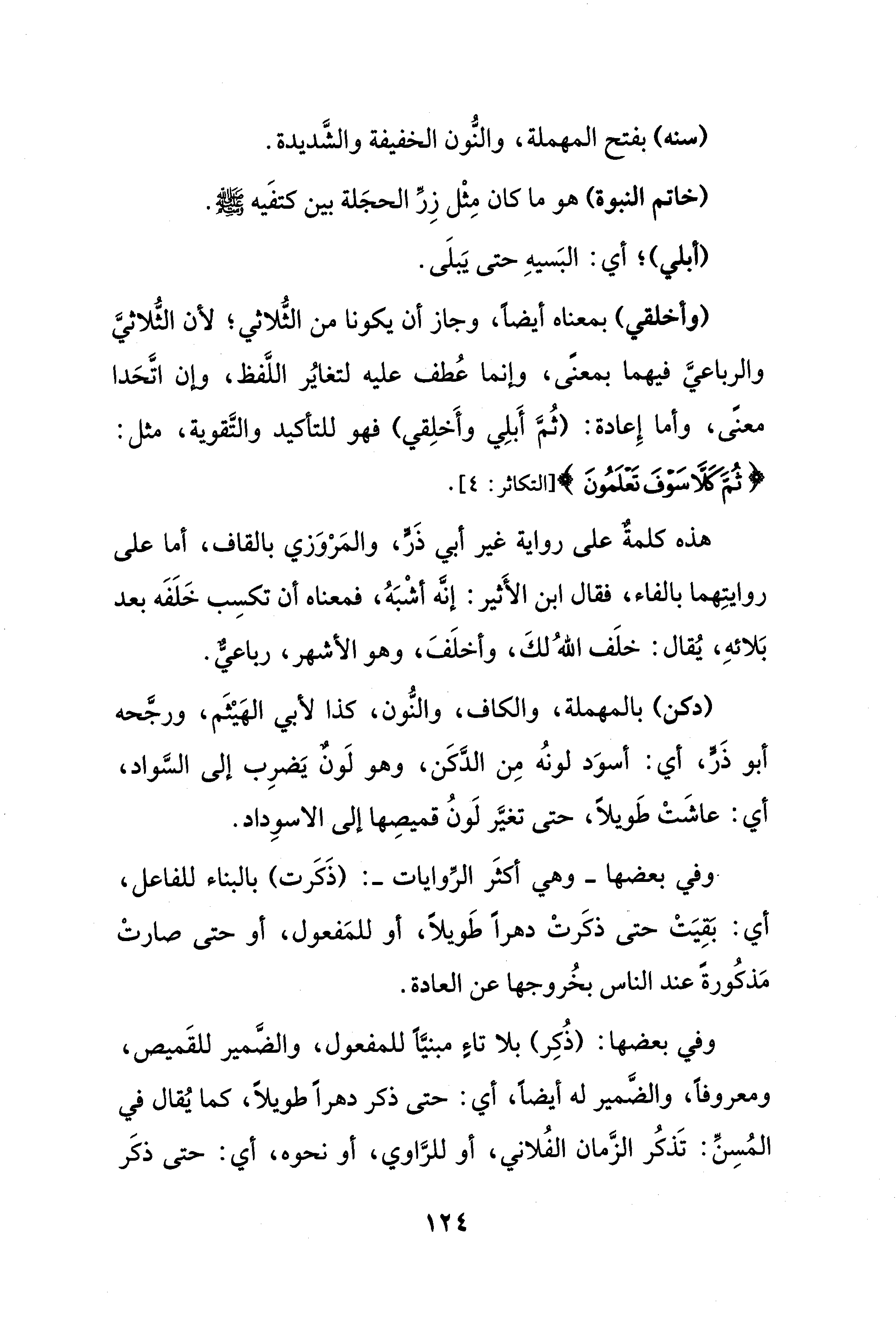 (وأخلقي) بمعناه أَيضًا، وجاز أن يكونا من الثُّلاثي؛ لأن الثُّلاثيَّ والرباعيَّ فيهما بمعنًى، وإنما عُطف عليه لتغايُر اللَّفظ، وإن اتَّحَدا معنى، وأما إِعادة: (ثُمَّ أَبلِي وأَخلِقي) فهو للتأكيد والتَّقوية، مثل: {ثُمَّ كَلَّا سَوْفَ تَعْلَمُونَ} [التكاثر: 4].