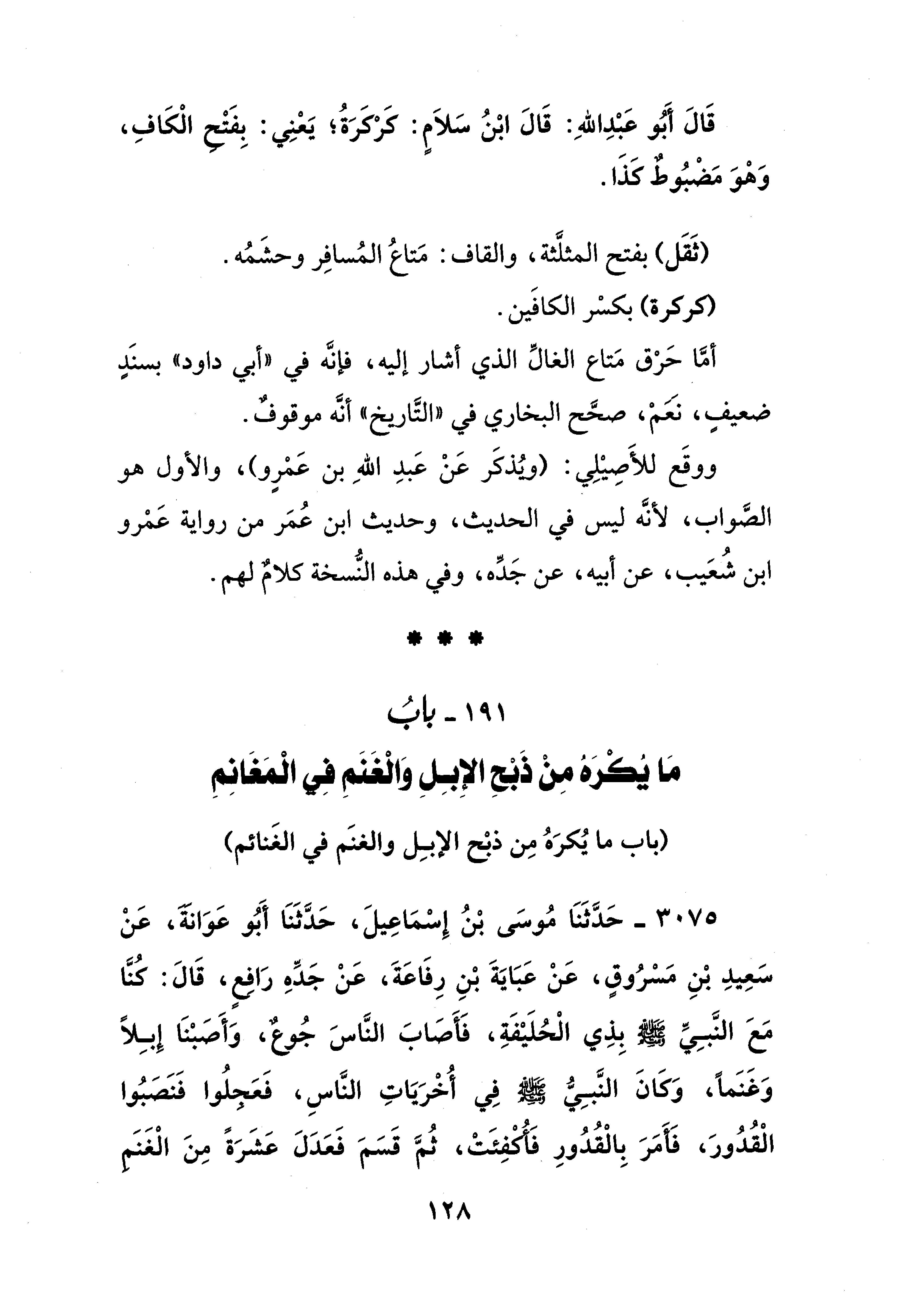 191 - بابُ مَا يُكْرَهُ مِنْ ذَبْحِ الإِبِلِ وَالْغَنَمِ فِي الْمَغَانِمِ