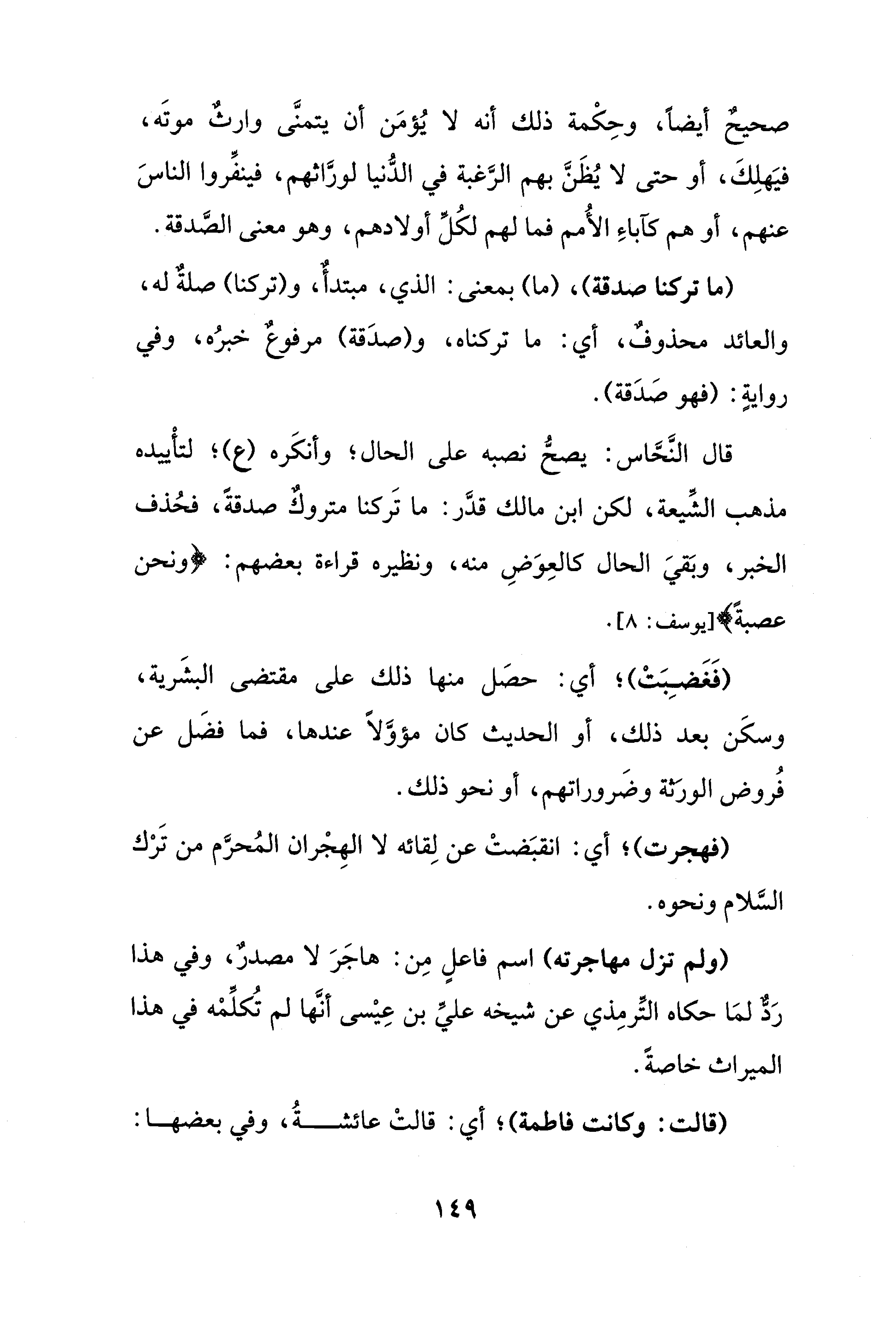 (ولم تزل مهاجرته) اسم فاعلٍ مِن: هاجَرَ لا مصدرٌ، وفي هذا رَدٌّ لمَا حكاه التِّرمِذي عن شيخه عليِّ بن عِيْسى أنَّها لم تُكلِّمْه في هذا الميراث خاصةً.