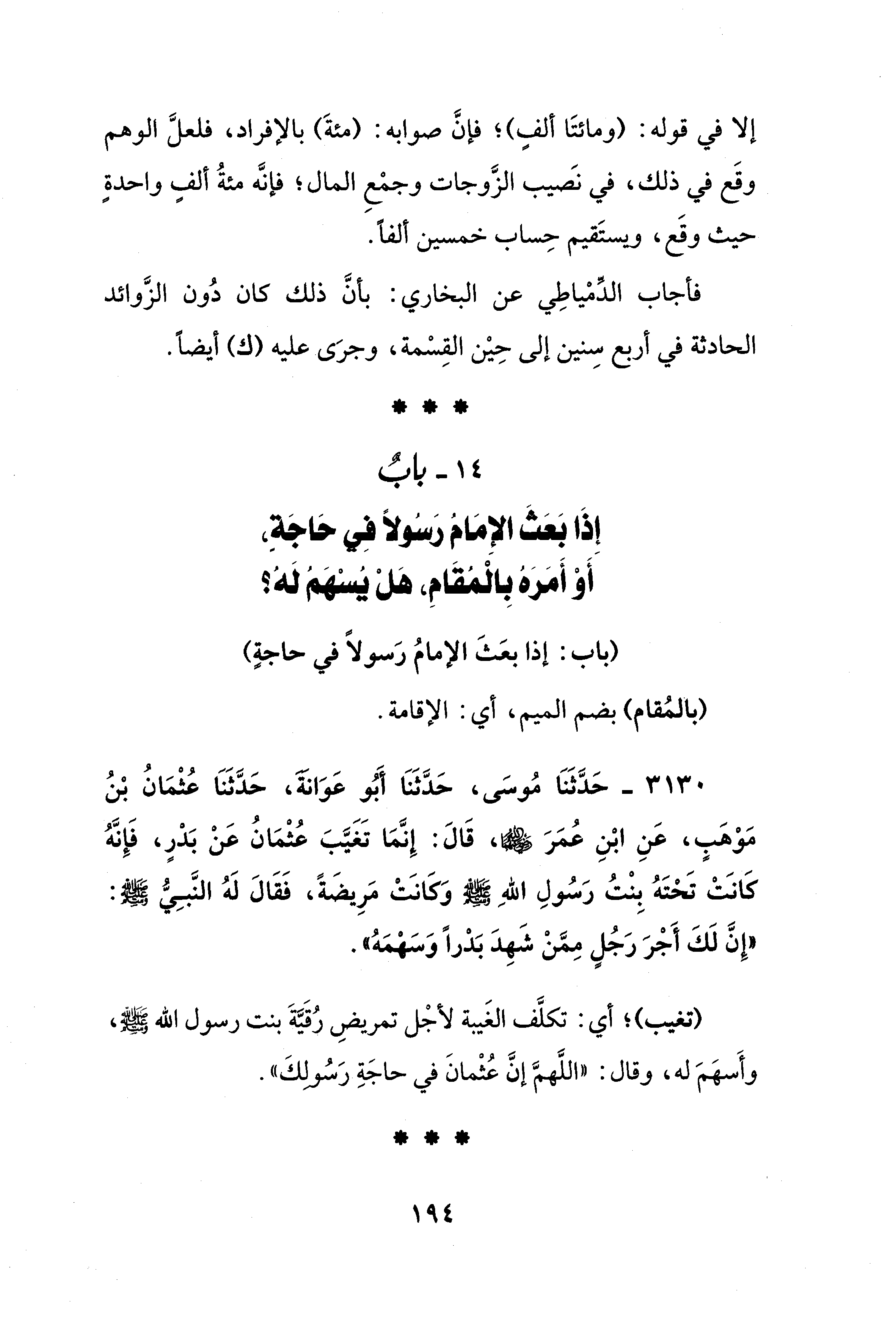 فأجاب الدِّمْياطِي عن البُخَارِيّ: بأنَّ ذلك كان دُون الزَّوائد الحادثة في أربع سِنين إلى حِيْن القِسْمة، وجرَى عليه (ك) أَيضًا.