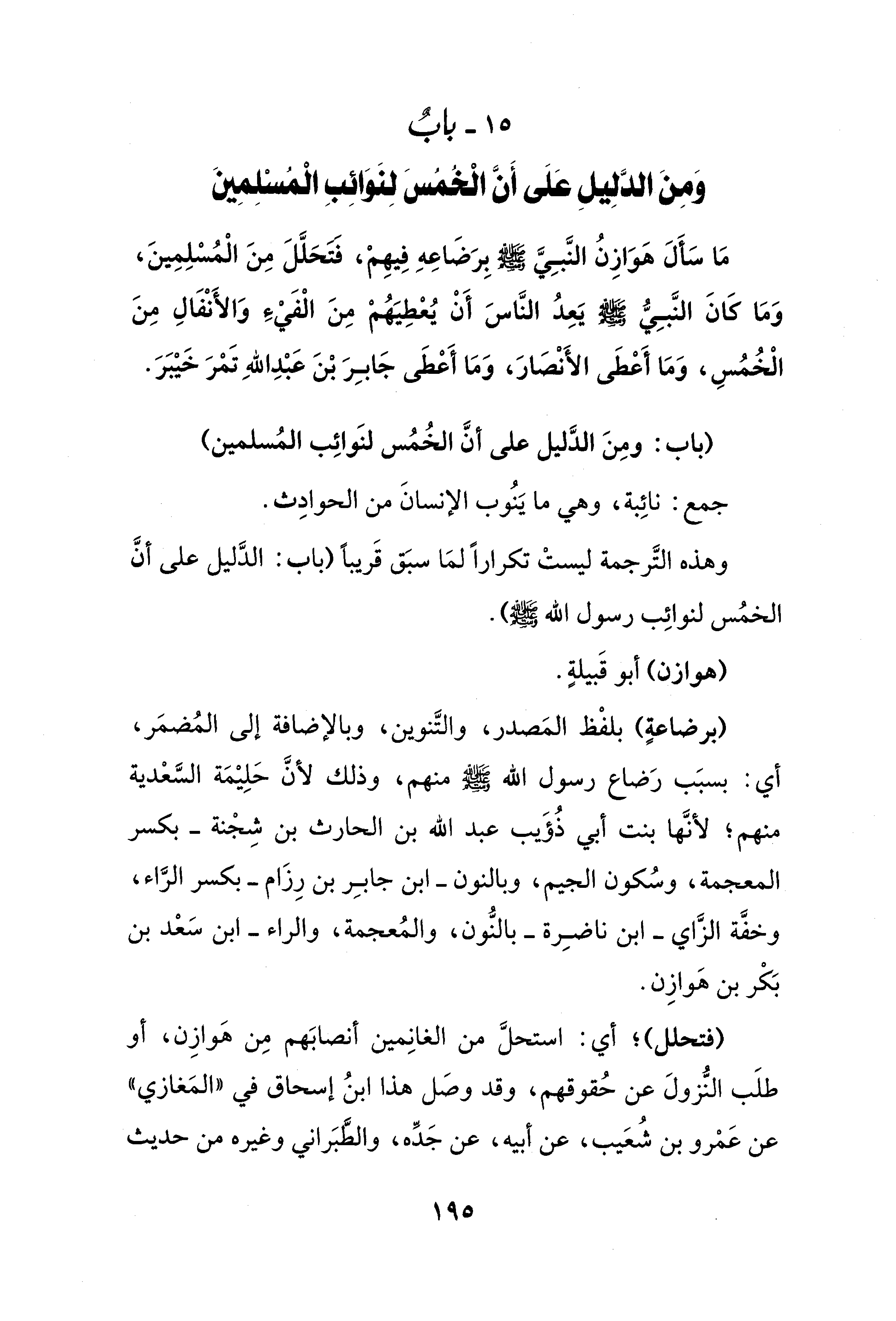 (باب: ومِنَ الدَّليل على أنَّ الخُمُس لنَوائِب المُسلمين)