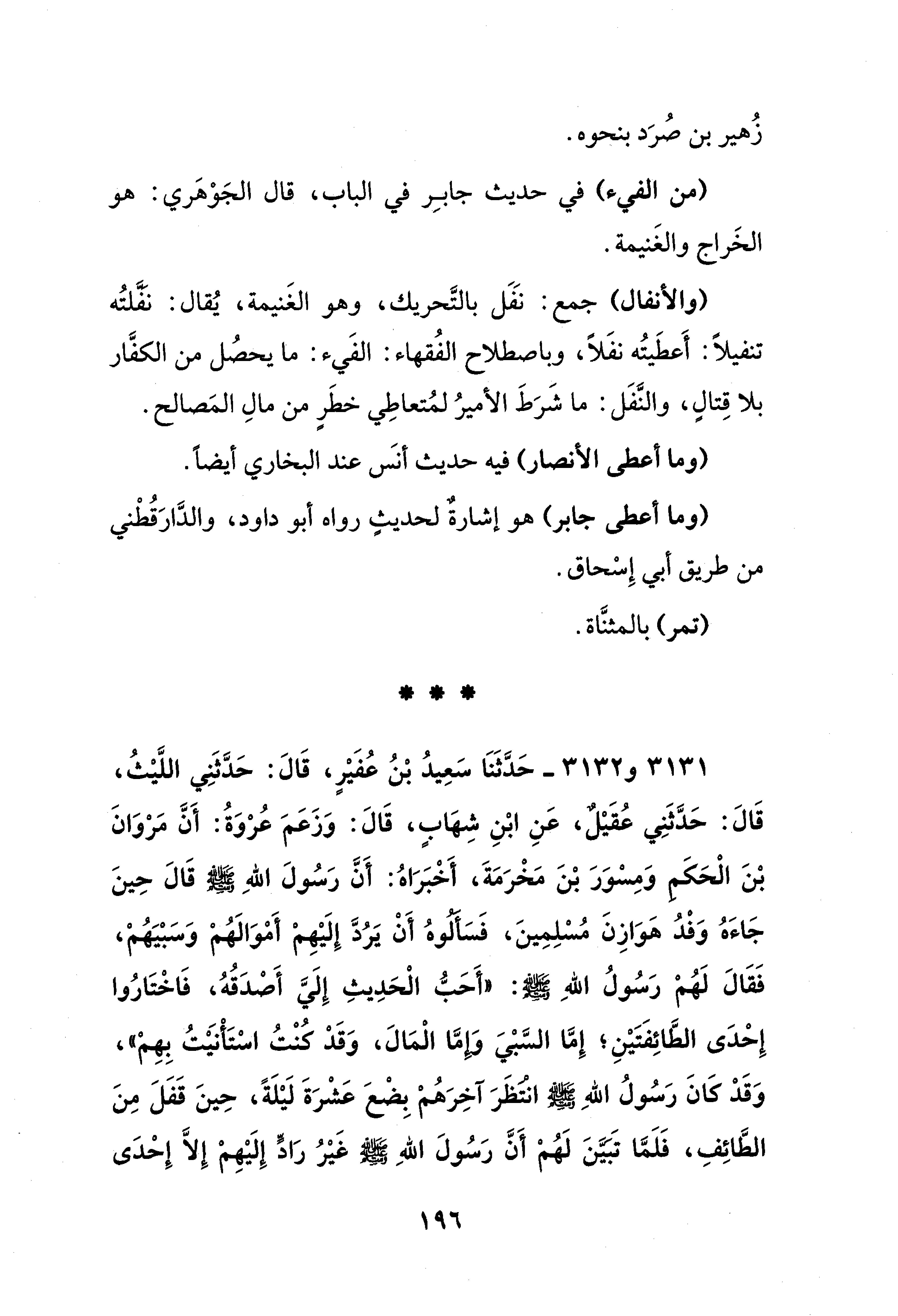 (من الفيء) في حديث جابِر في الباب، قال الجَوْهَري: هو الخَراج والغَنيمة.