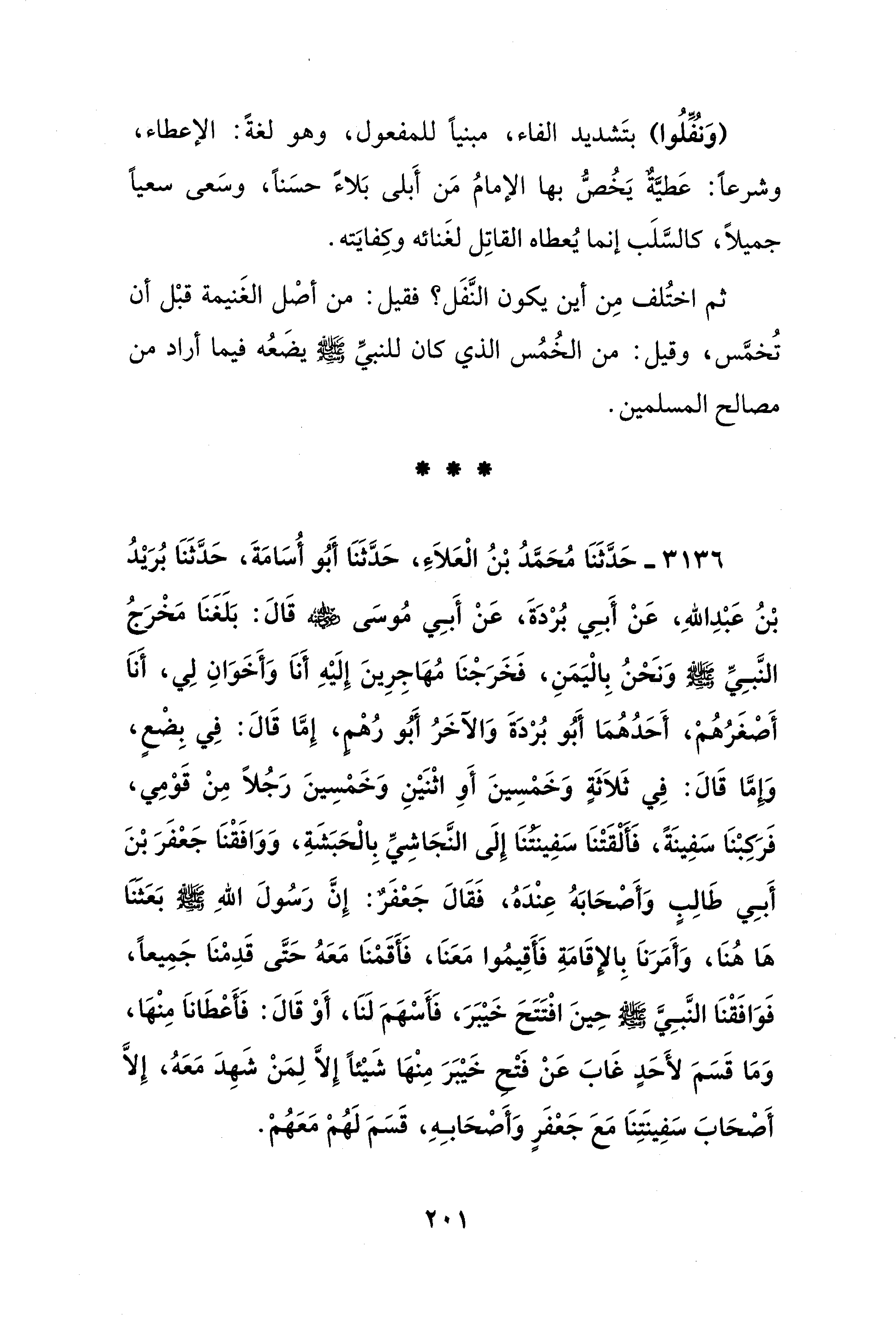 ثم اختُلف مِن أين يكون النَّفَل؟ فقيل: من أصْل الغَنيمة قبْل أن تُخمَّس، وقيل: من الخُمُس الذي كان للنبيِّ - صلى الله عليه وسلم - يضَعُه فيما أراد من مصالح المسلمين.