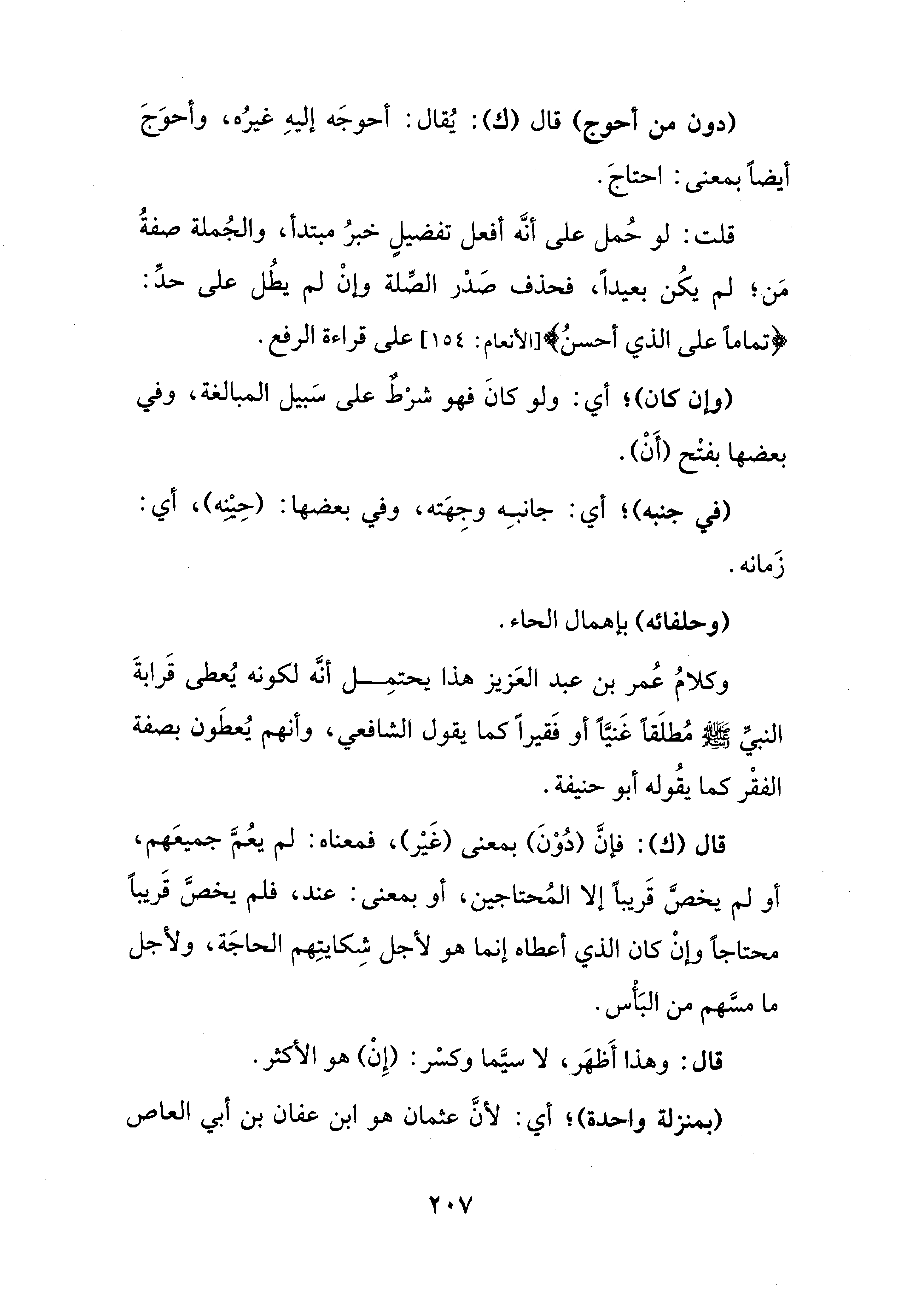 وكلامُ عُمر بن عبد العَزيز هذا يحتمِل أنَّه لكونه يُعطى قَرابةَ النبيِّ - صلى الله عليه وسلم - مُطلَقًا غَنيًّا أو فَقيرًا كما يقول الشَّافعيّ، وأنهم يُعطَون بصفة الفقْر كما يقُوله أبو حنيفة.