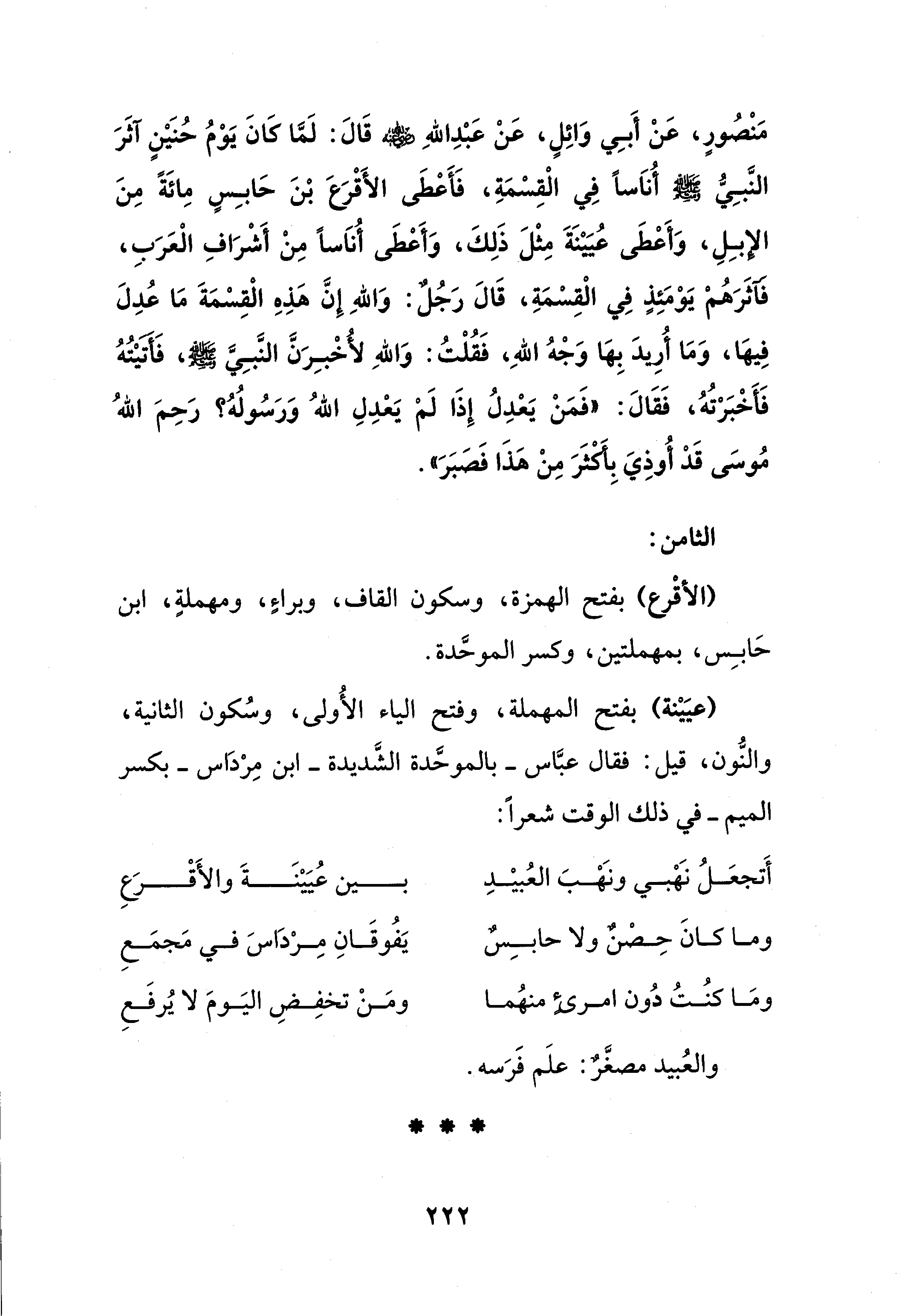 وما كانَ حِصْنٌ ولا حابِسٌ ... يَفُوقَانِ مِرْدَاسَ في مَجمَعِ