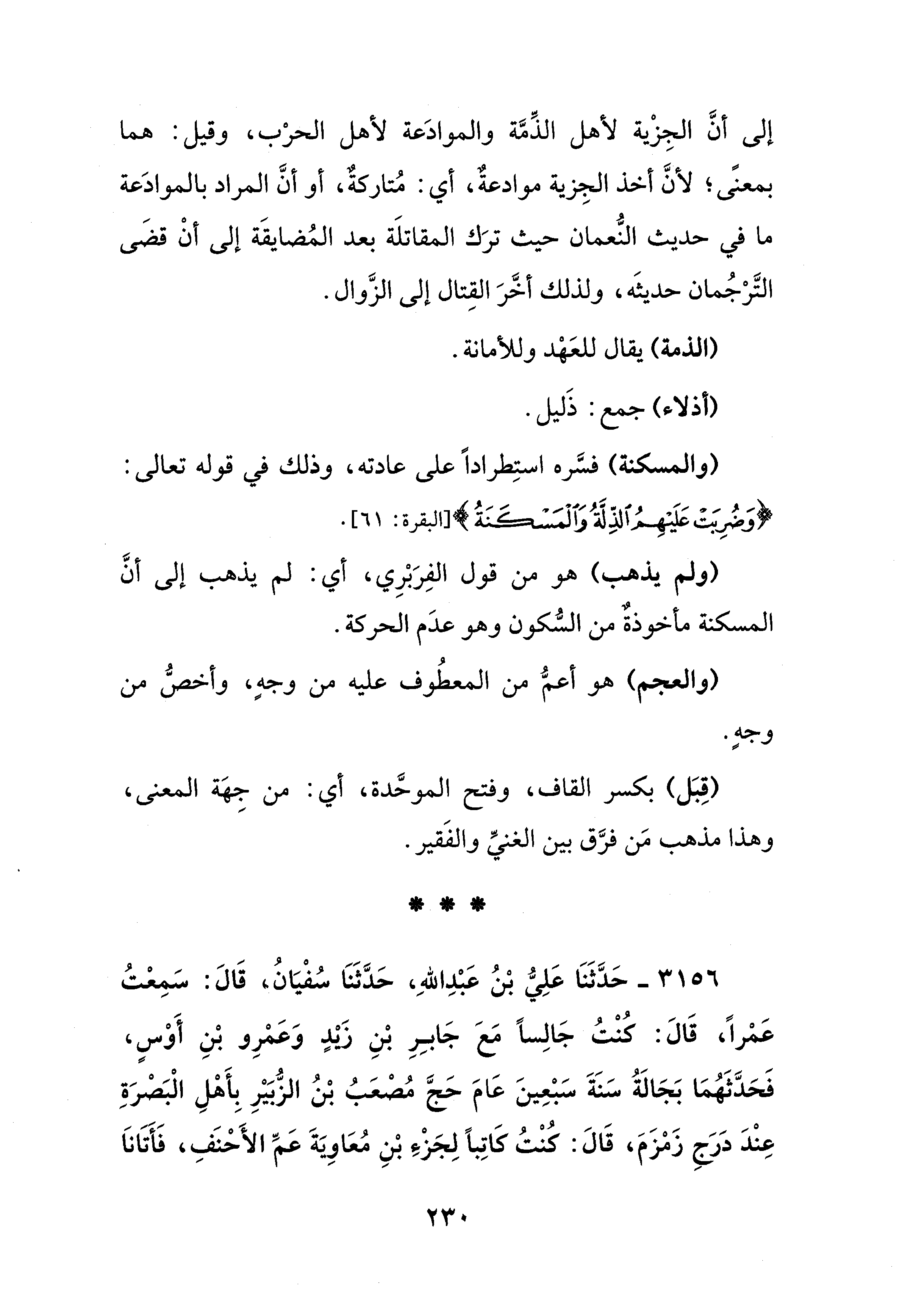 (والمسكنة) فسَّره استِطرادًا على عادته، وذلك في قوله تعالى: {وَضُرِبَتْ عَلَيْهِمُ الذِّلَّةُ وَالْمَسْكَنَةُ} [البقرة: 61].