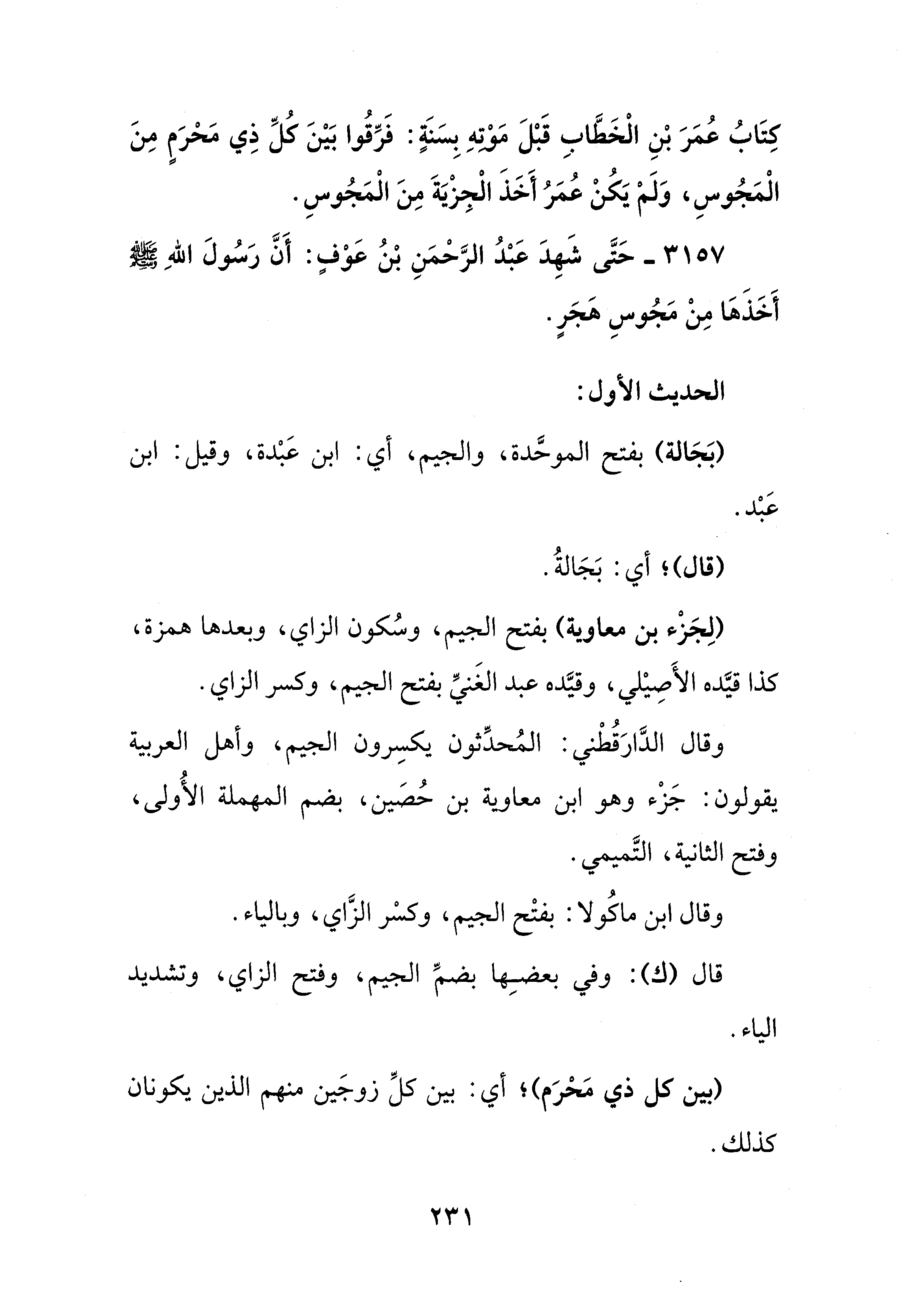 3157 - حَتَّى شَهِدَ عَبْدُ الرَّحْمَنِ بْنُ عَوْفٍ: أَنَّ رَسُولَ اللهِ - صلى الله عليه وسلم - أَخَذَهَا مِنْ مَجُوسِ هَجَرٍ.