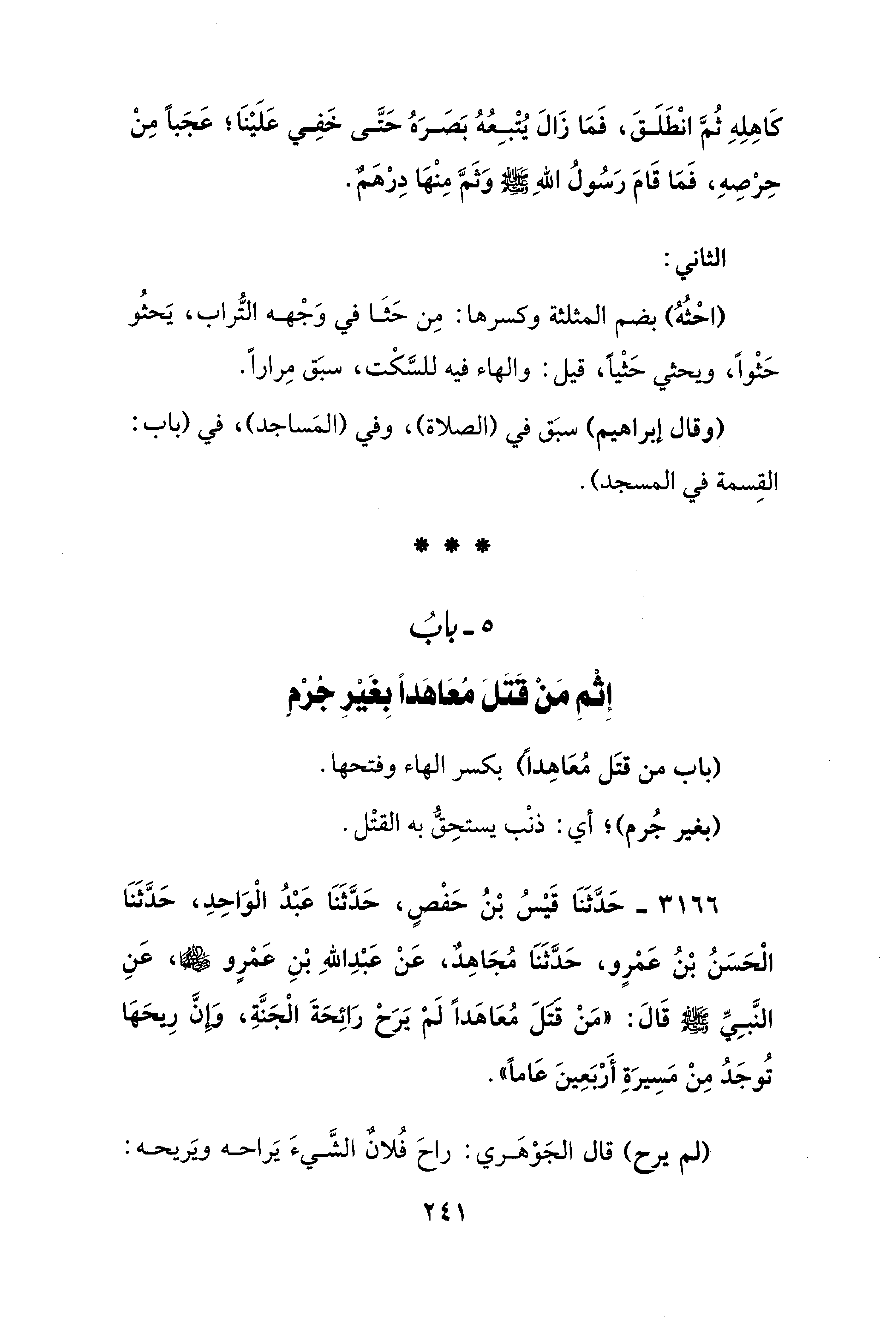 5 - بابُ إِثْمِ مَنْ قَتَلَ مُعَاهَدًا بِغَيْرِ جُرْمٍ