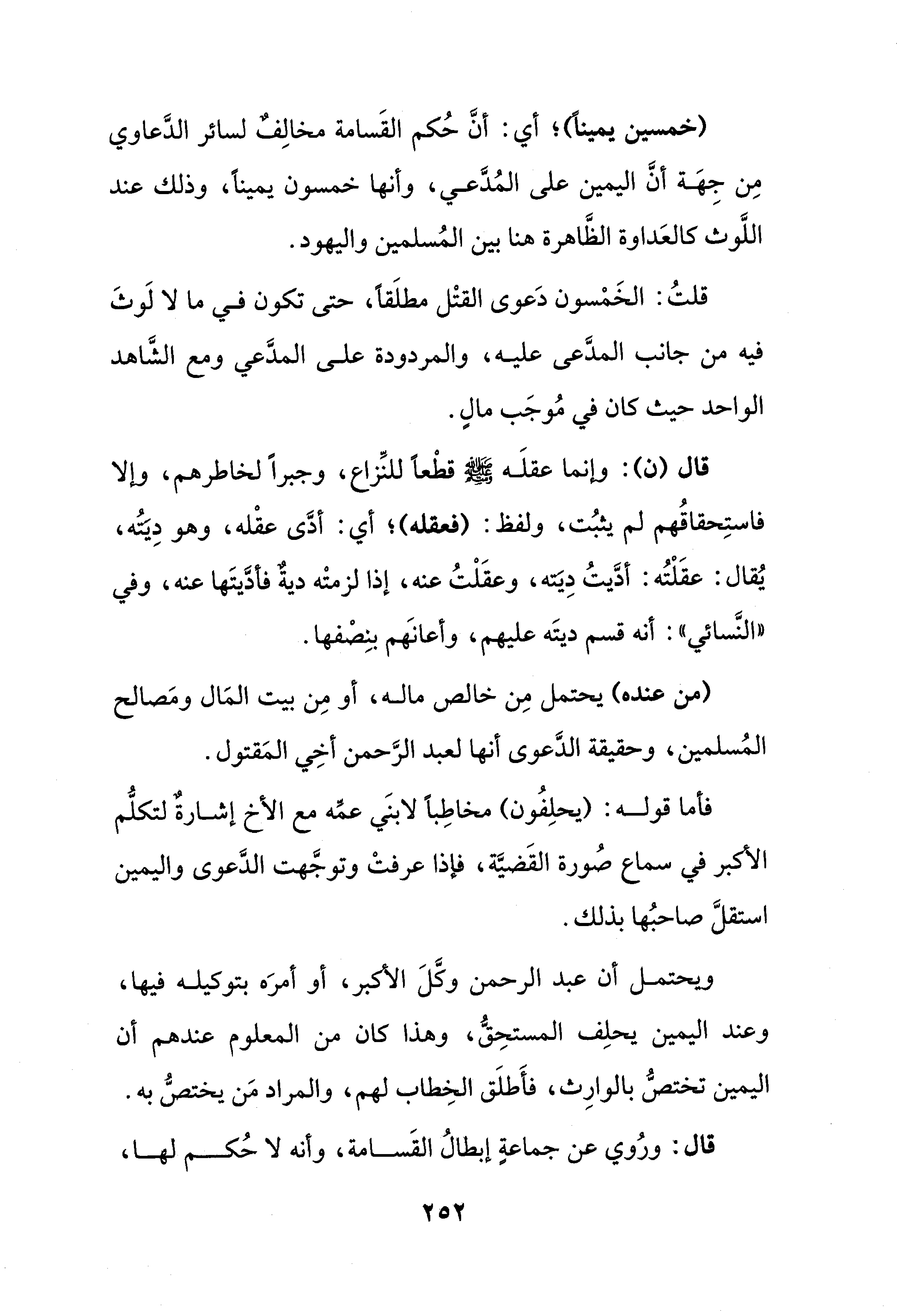 قلتُ: الخَمْسون دَعوى القتْل مطلَقًا، حتَّى تكون في ما لا لَوثَ فيه من جانب المدَّعى عليه، والمردودة على المدَّعي ومع الشَّاهد الواحد حيث كان في مُوجَب مالٍ.