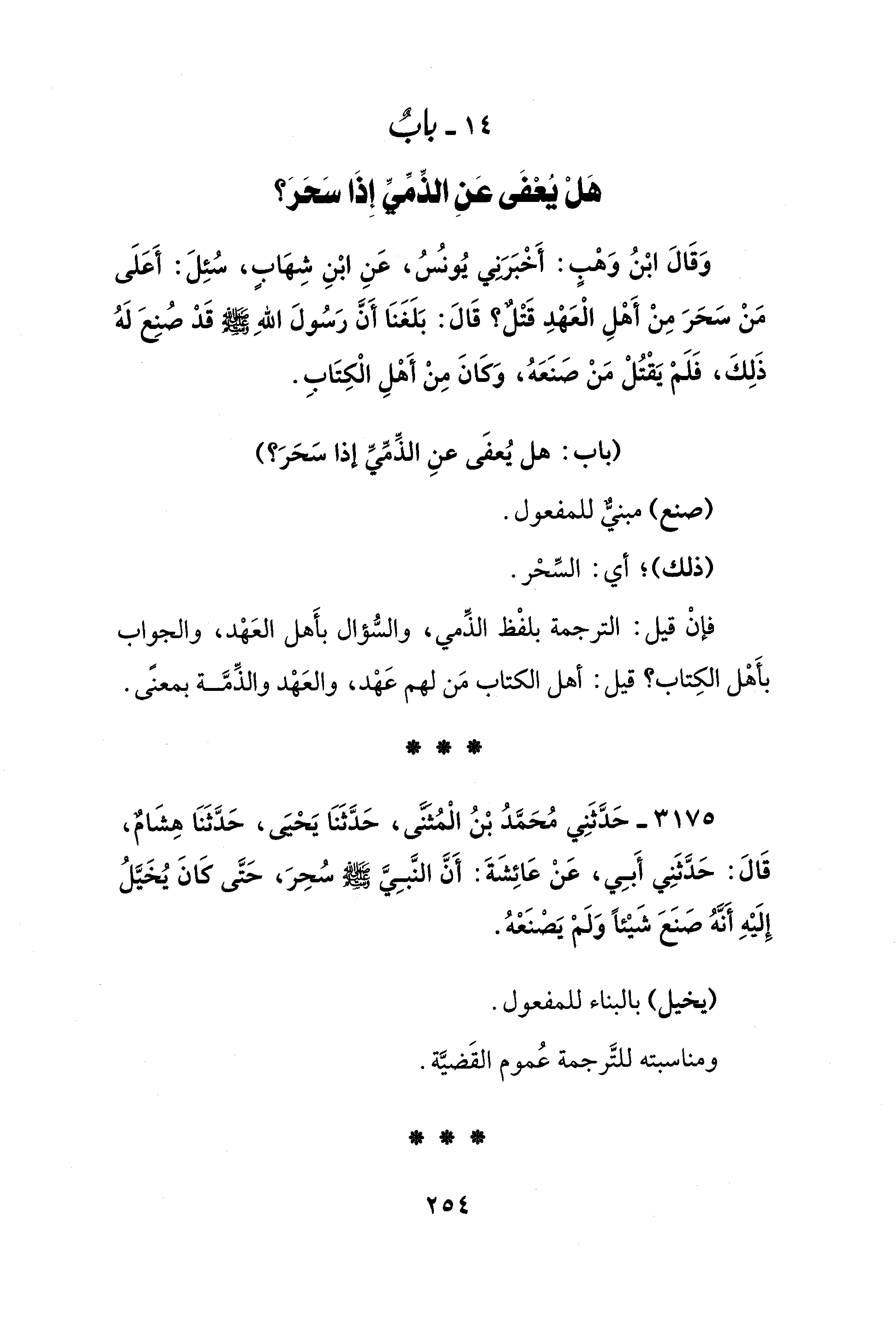 14 - بابٌ هَلْ يُعْفَى عَنِ الذِّمِّيِّ إِذَا سَحَرَ؟