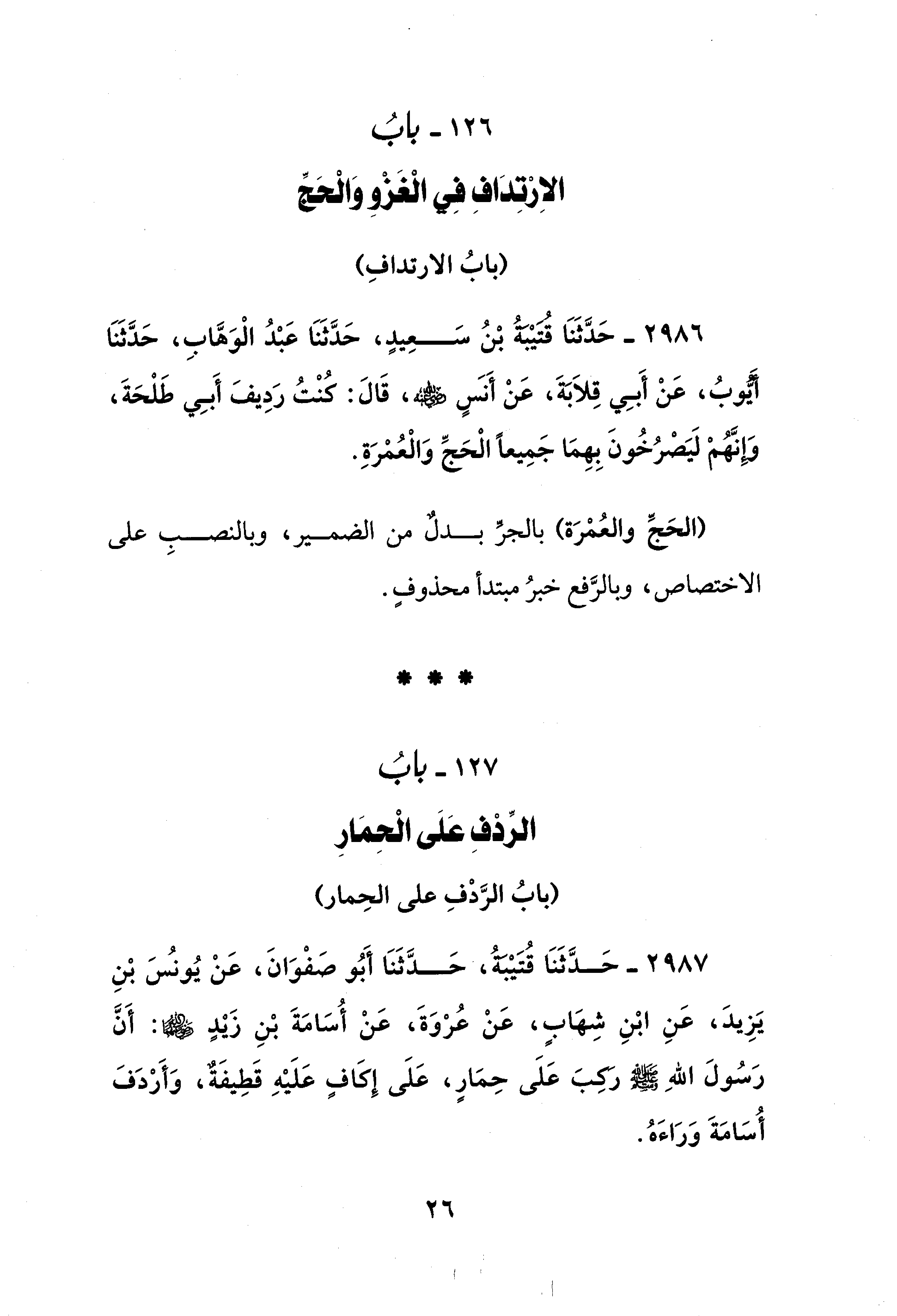 126 - بابُ الاِرْتِدَافِ فِي الْغَزْوِ وَالْحَجِّ