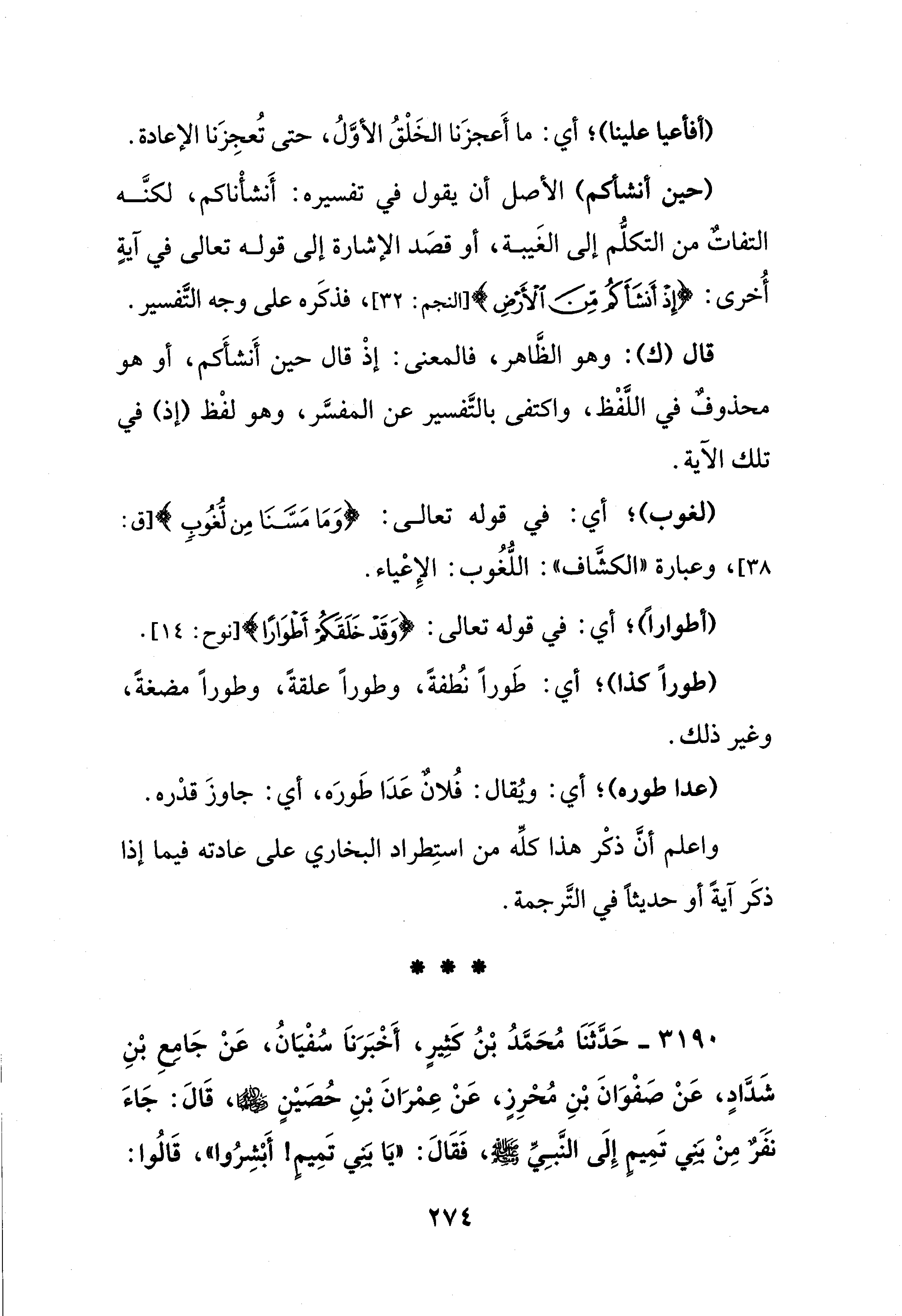 واعلم أنَّ ذكْر هذا كلِّه من استِطراد البُخَارِيّ على عادته فيما إذا ذكَر آيةً أو حديثًا في التَّرجمة.