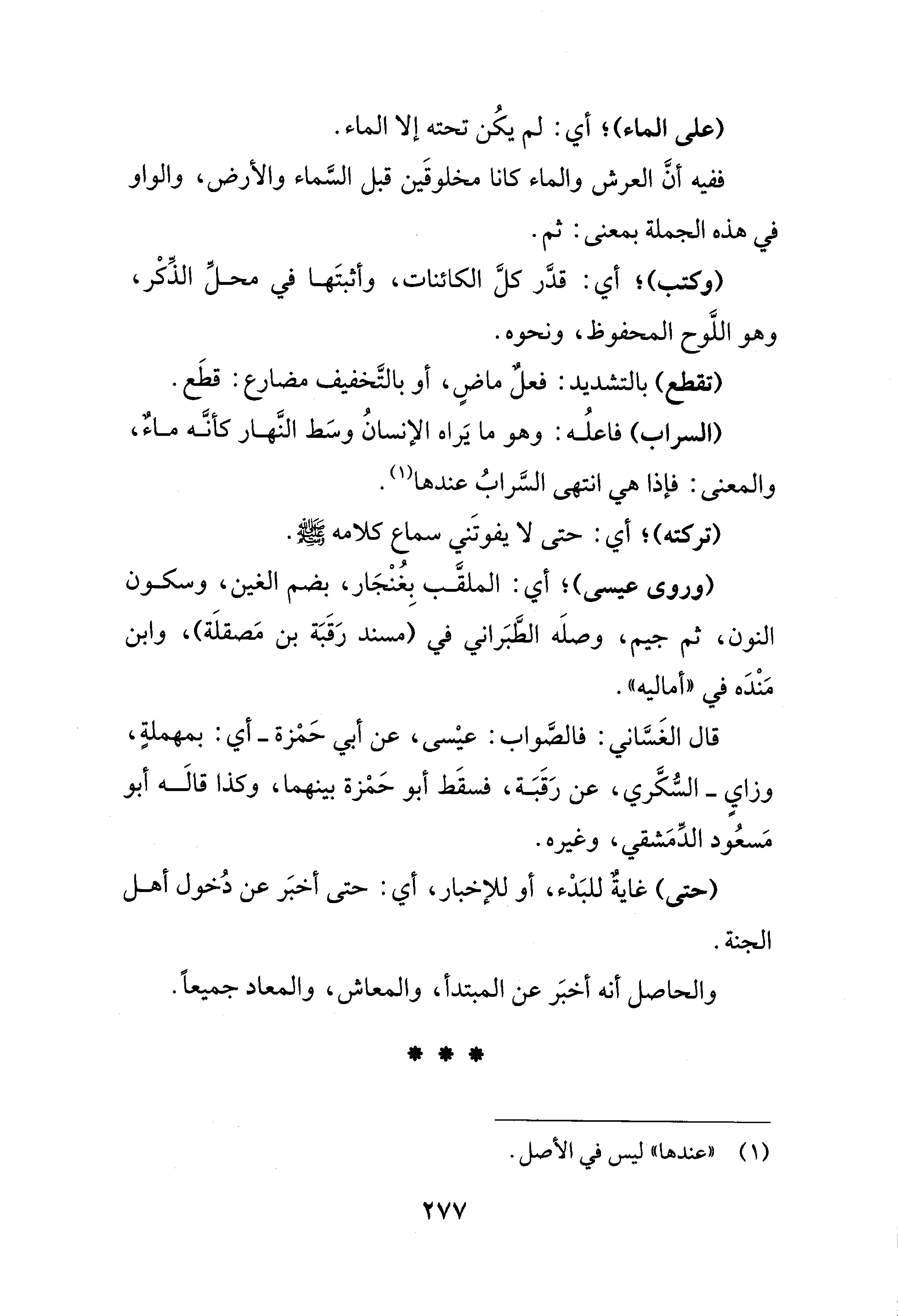 (السراب) فاعلُه: وهو ما يَراه الإنسانُ وسَط النَّهار كأنَّه ماءٌ، والمعنى: فإذا هي انتهى السَّرابُ عندها (¬1).