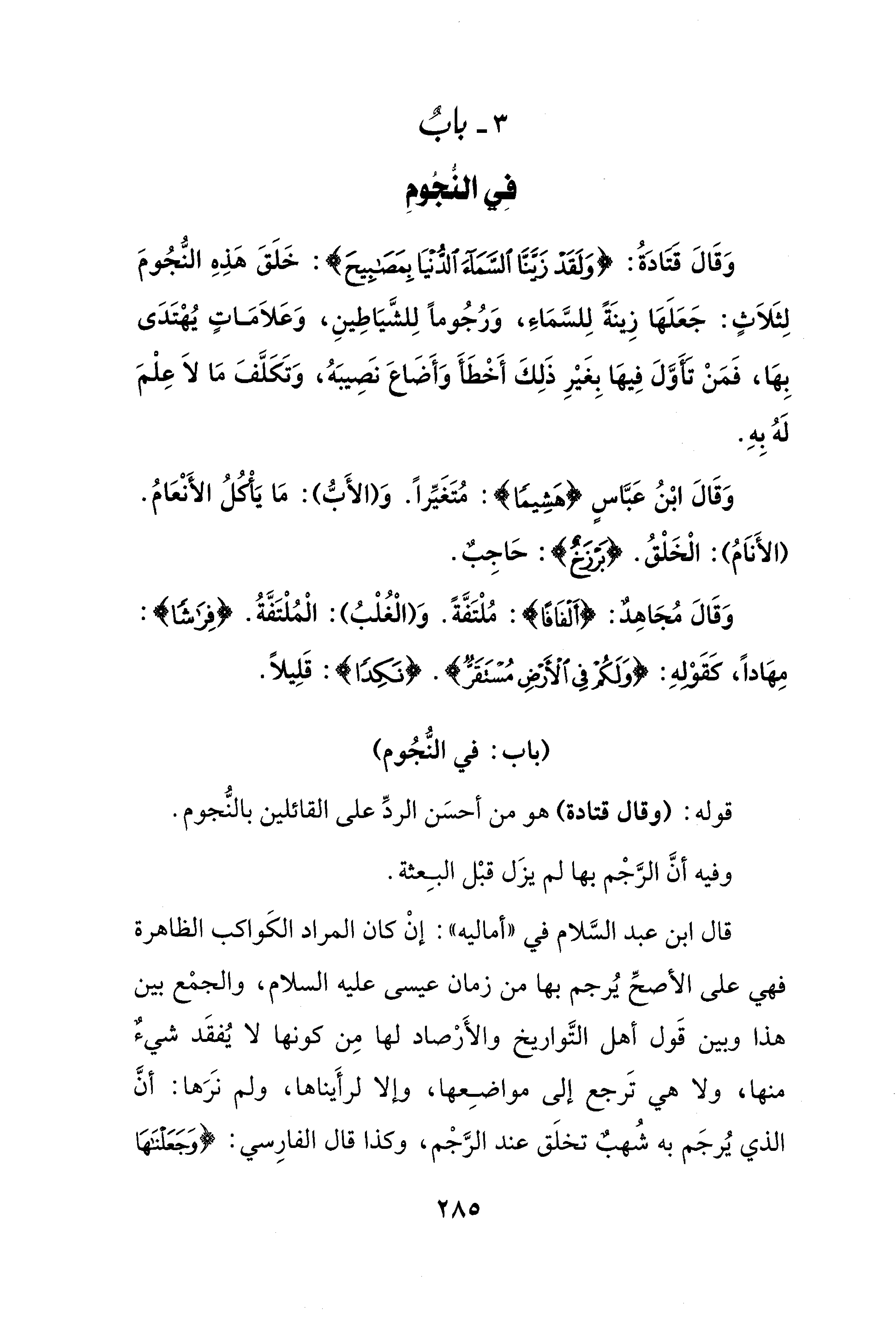 قوله: (وقال قتادة) هو من أحسَن الرد على القائلين بالنُّجوم.
