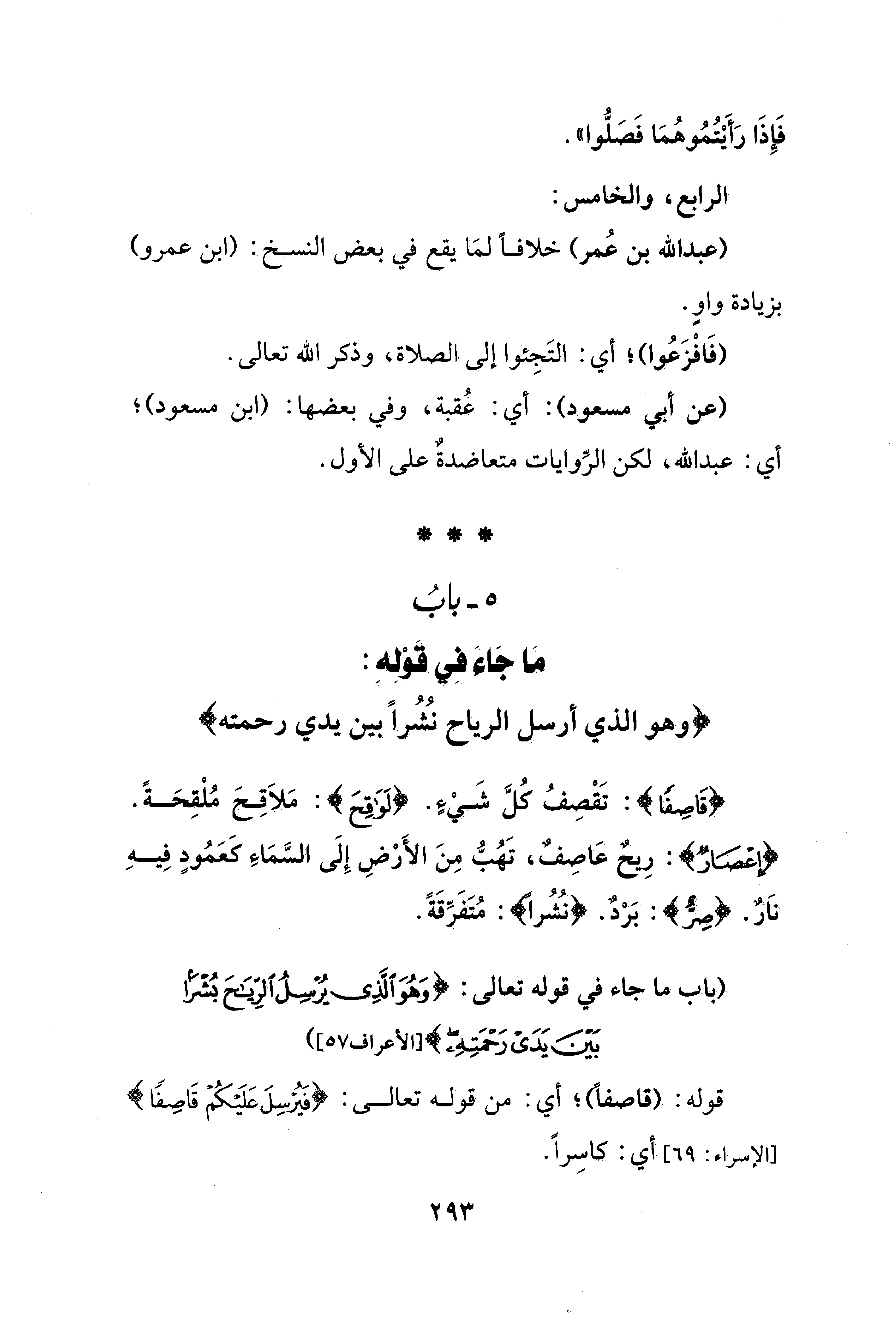 5 - بابُ مَا جَاء فِي قوْلِهِ: {وهو الذي أرسل الرياح نُشُرًا بين يدي رحمته}