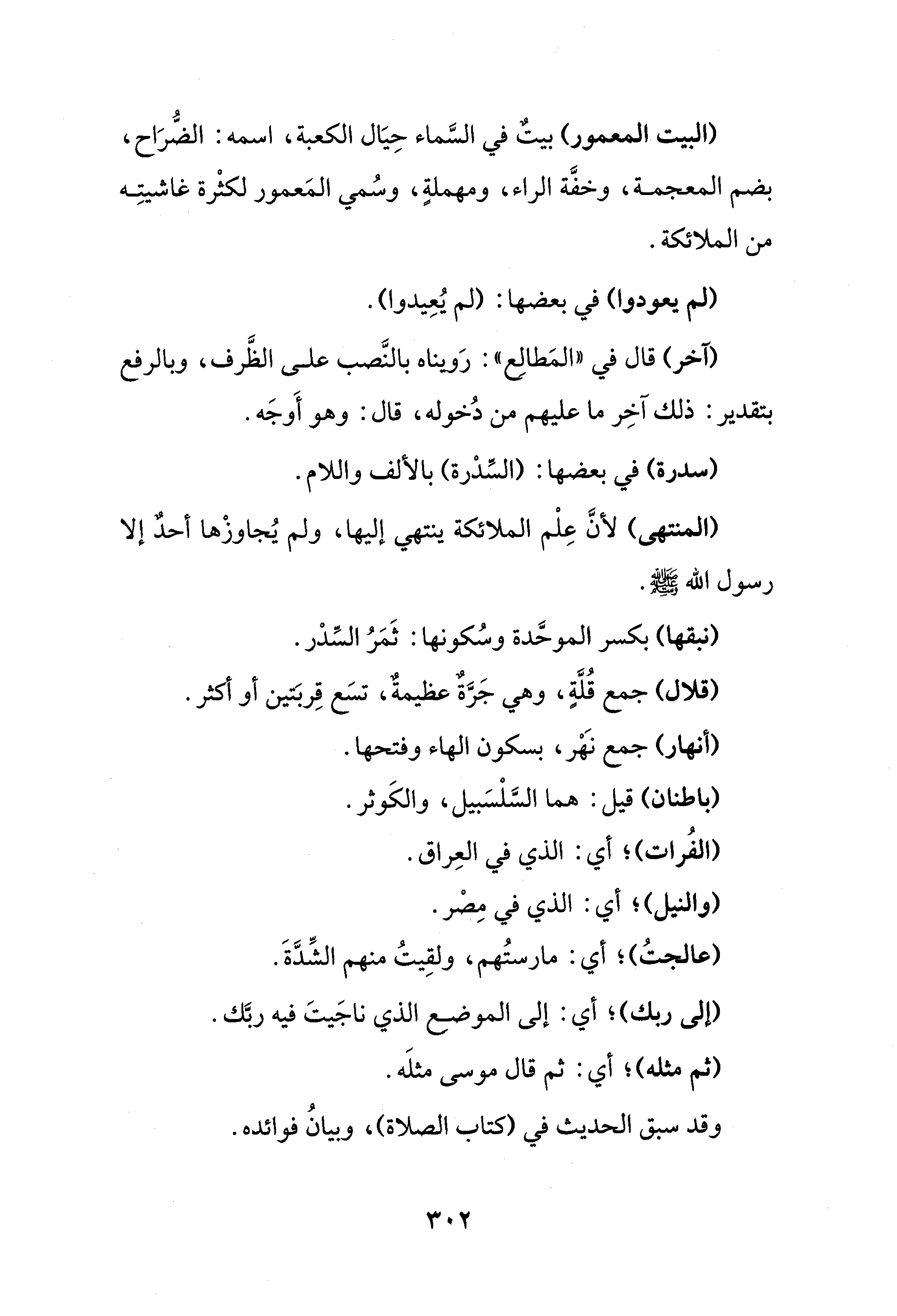 (البيت المعمور) بيت في السَّماء حِيَال الكعبة، اسمه: الضُّرَاح، بضم المعجمة، وخفَّة الراء، ومهملةٍ، وسُمي المَعمور لكثْرة غاشيتِه من الملائكة.