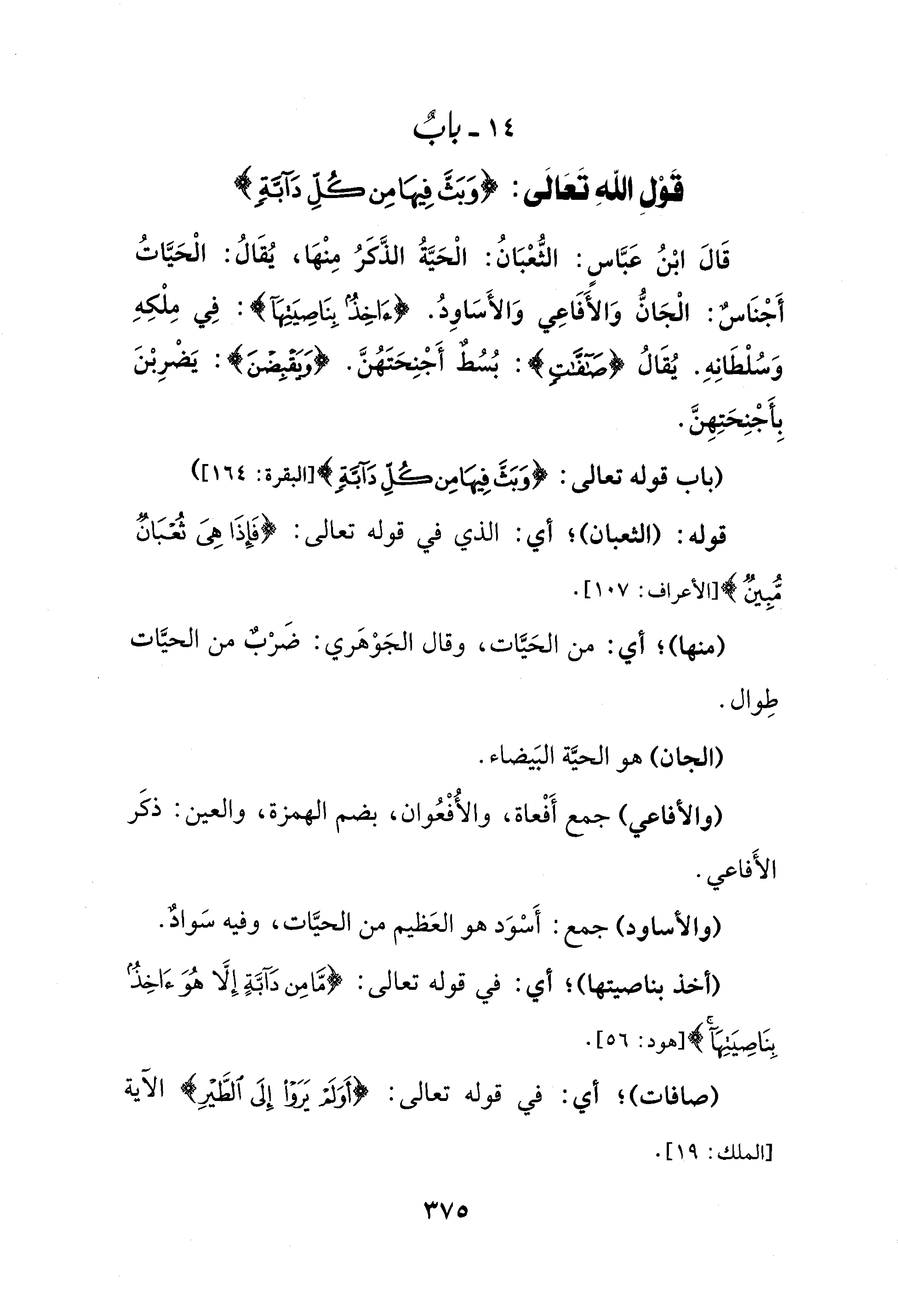14 - بابٌ قولِ الله تعالَى: {وَبَثَّ فِيهَا مِنْ كُلِّ دَابَّةٍ}