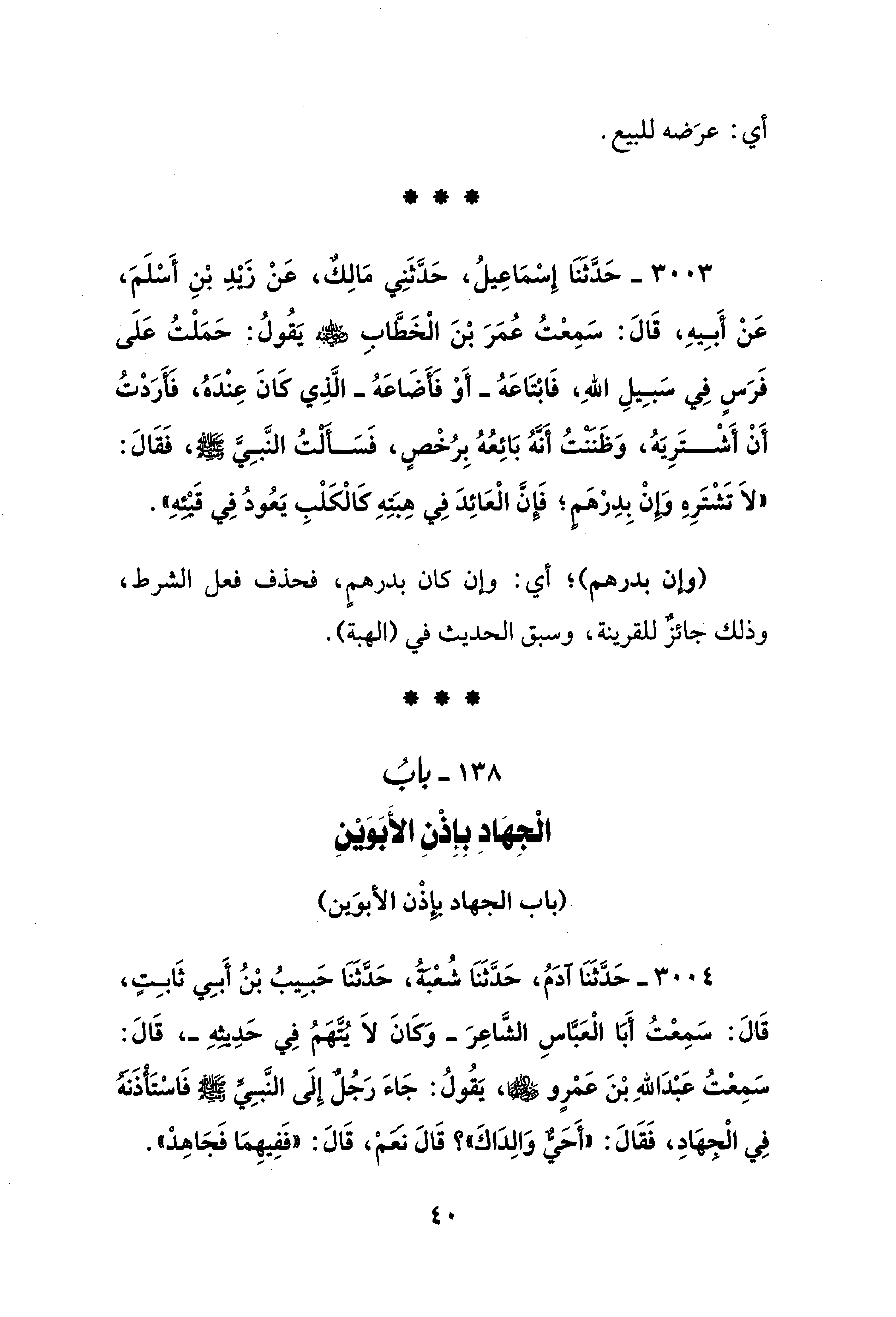 138 - بابُ الْجِهَادِ بِإِذْنِ الأَبَوَيْنِ