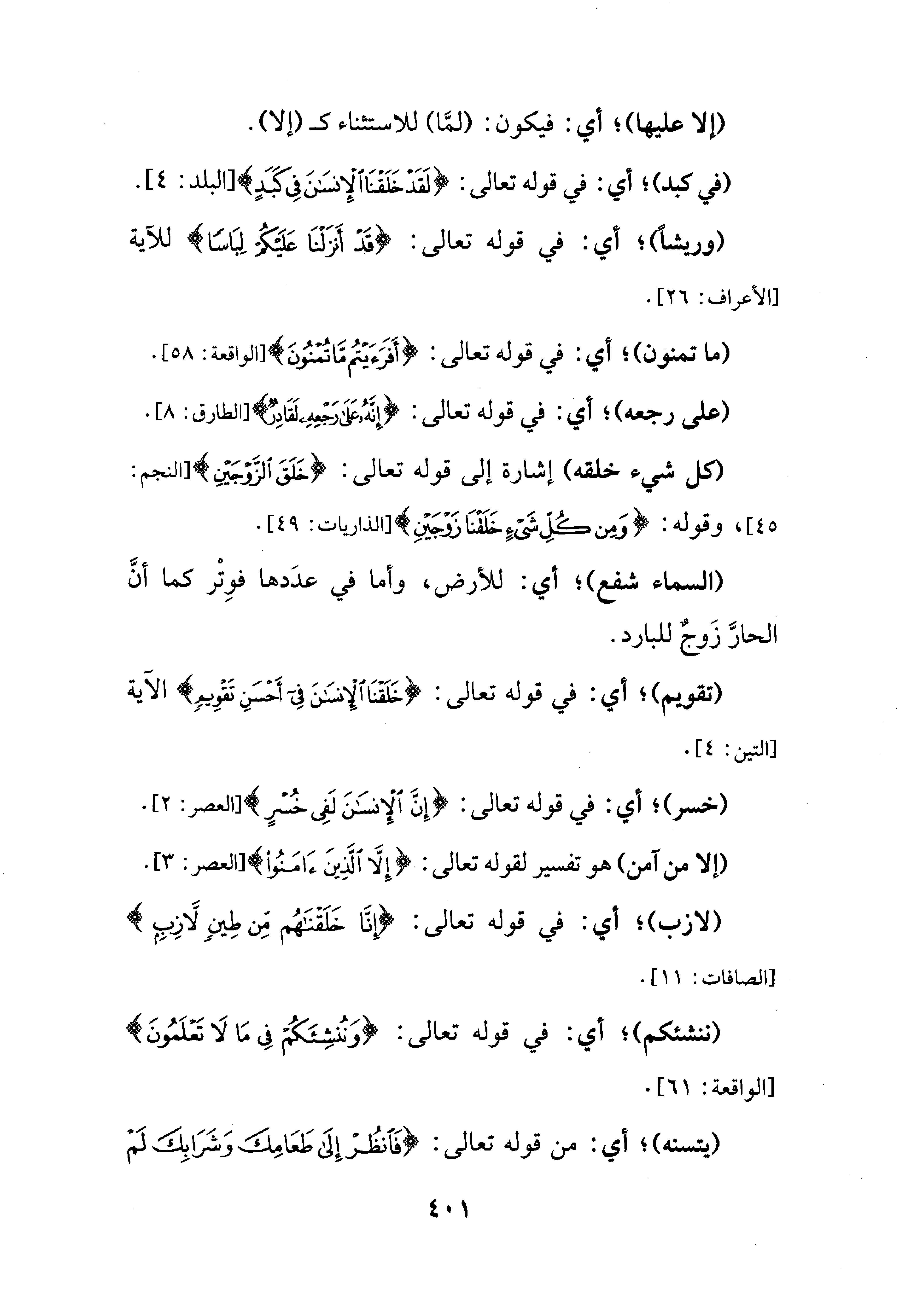 (خسر)؛ أي: في قوله تعالى: {إِنَّ الْإِنْسَانَ لَفِي خُسْرٍ} [العصر: 2].