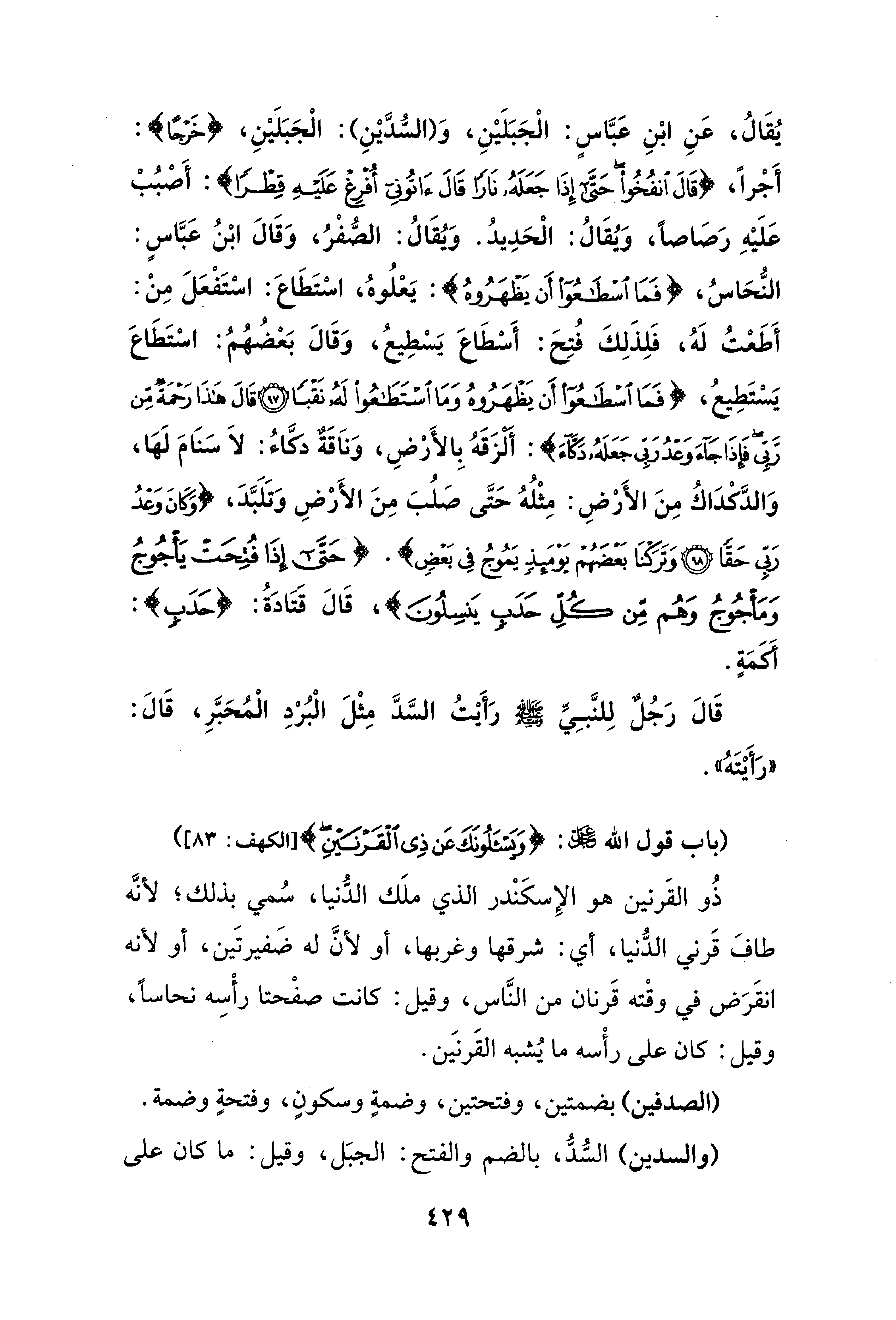 (باب قول الله - عز وجل -: {وَيَسْأَلُونَكَ عَنْ ذِي الْقَرْنَيْن} [الكهف: 83])