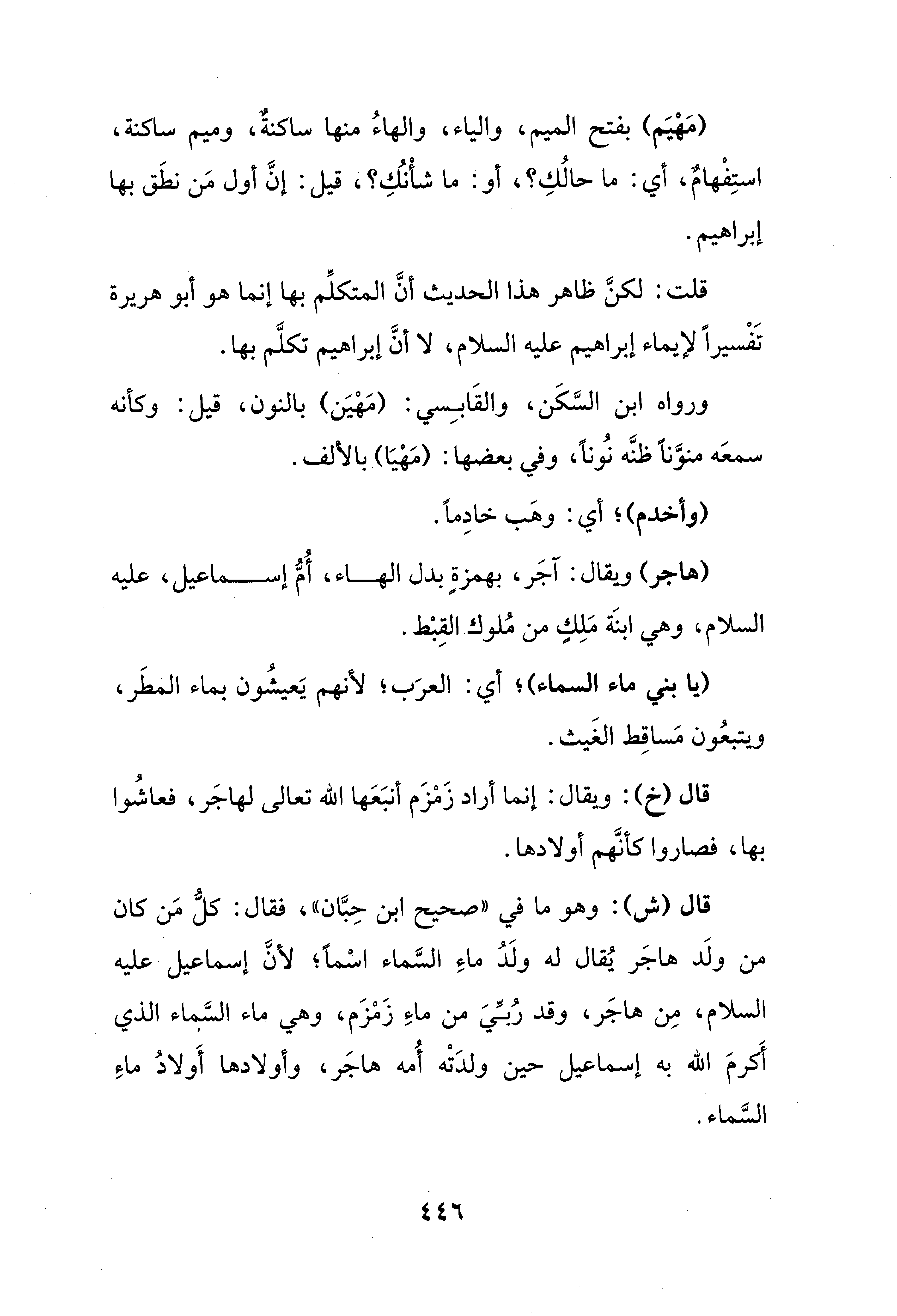 قال (ش): وهو ما في "صحيح ابن حِبَّان"، فقال: كلُّ مَن كان من ولَد هاجَر يُقال له ولَدُ ماءِ السَّماء اسْمًا، لأنَّ إسماعيل عليه السلام، مِن هاجَر، وقد رُبِّيَ من ماءِ زَمزَم، وهي ماء السَّماء الذي أكَرمَ الله به إسماعيل حين ولدَتْه أُمه هاجَر، وأولادها أَولادُ ماءِ السَّماء.