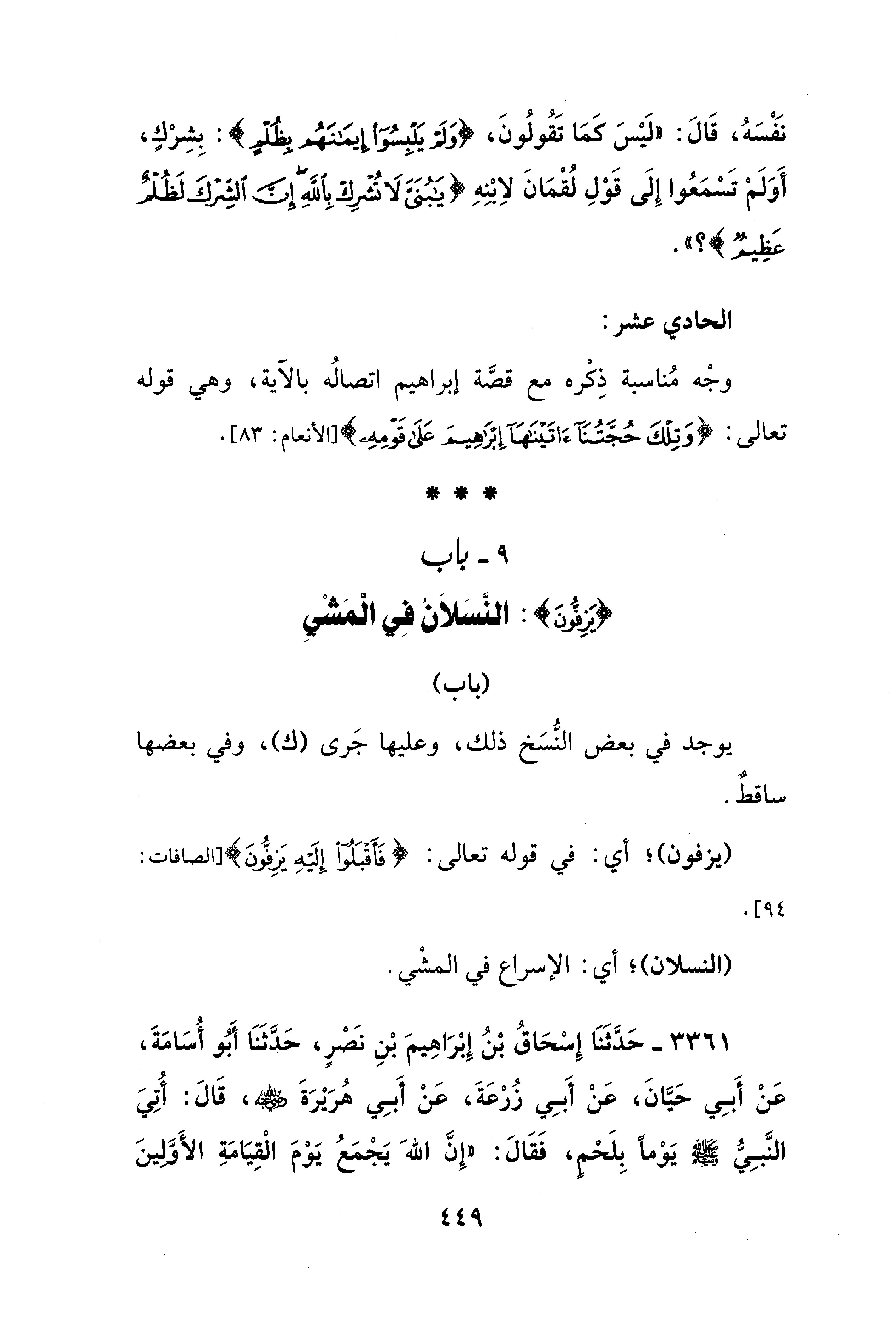 9 - باب {يَزِفُّونَ}: النَّسَلاَن فِي الْمَشْيِ