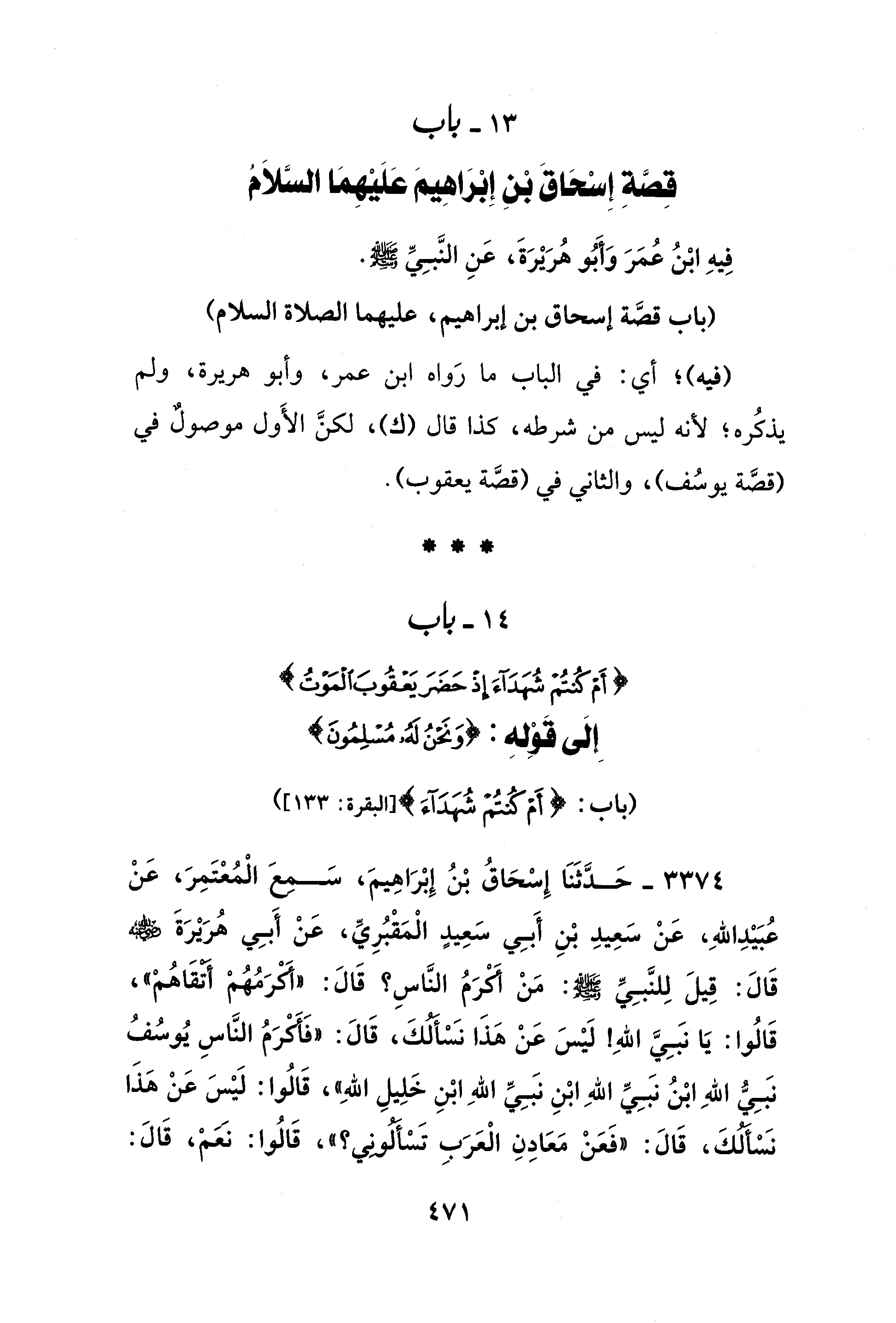 13 - باب قِصَّةِ إِسحَاقَ بْنِ إِبْرَاهِيمَ عَلَيْهِمَا السَّلاَمُ