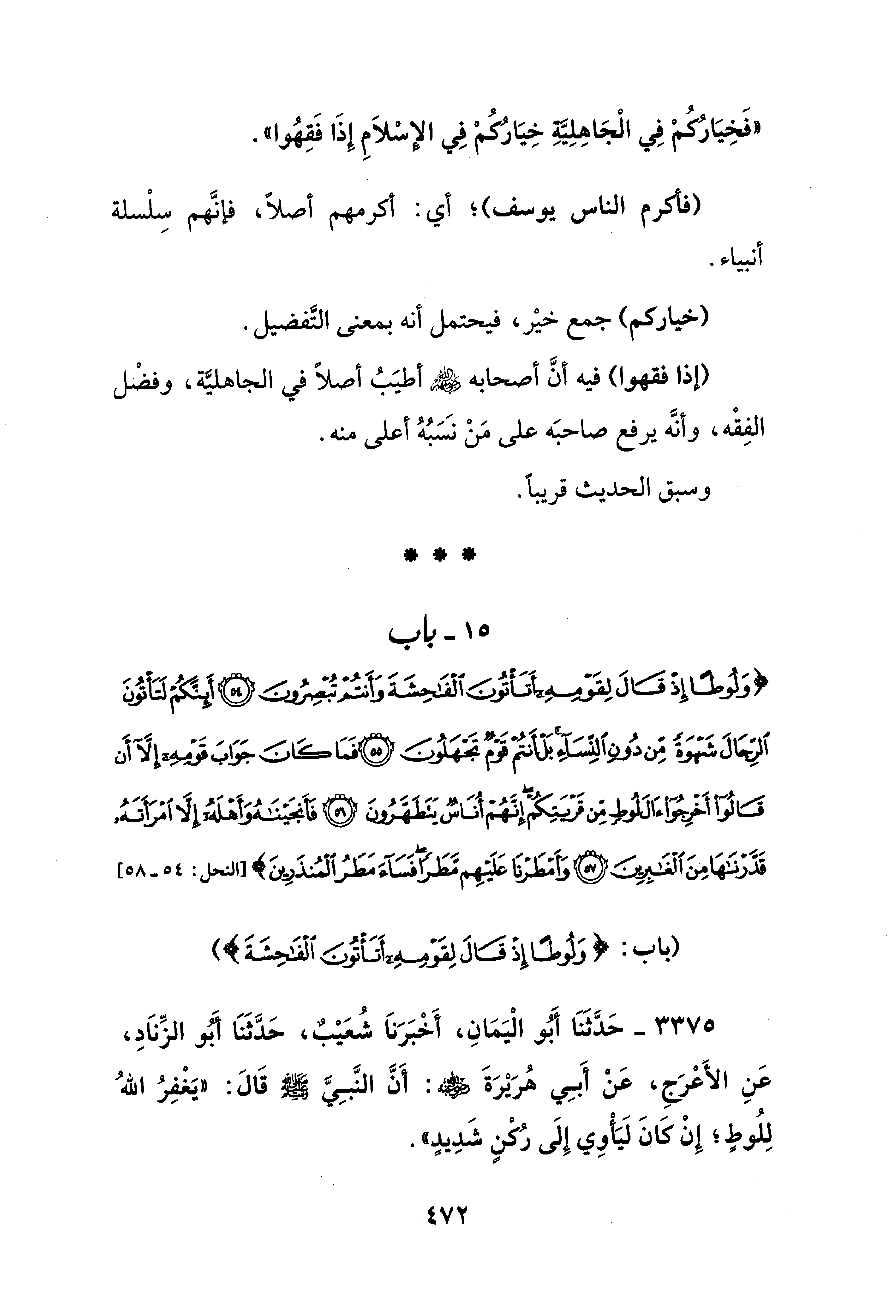 (باب: {وَلُوطًا إِذْ قَالَ لِقَوْمِهِ أَتَأْتُونَ الْفَاحِشَةَ})