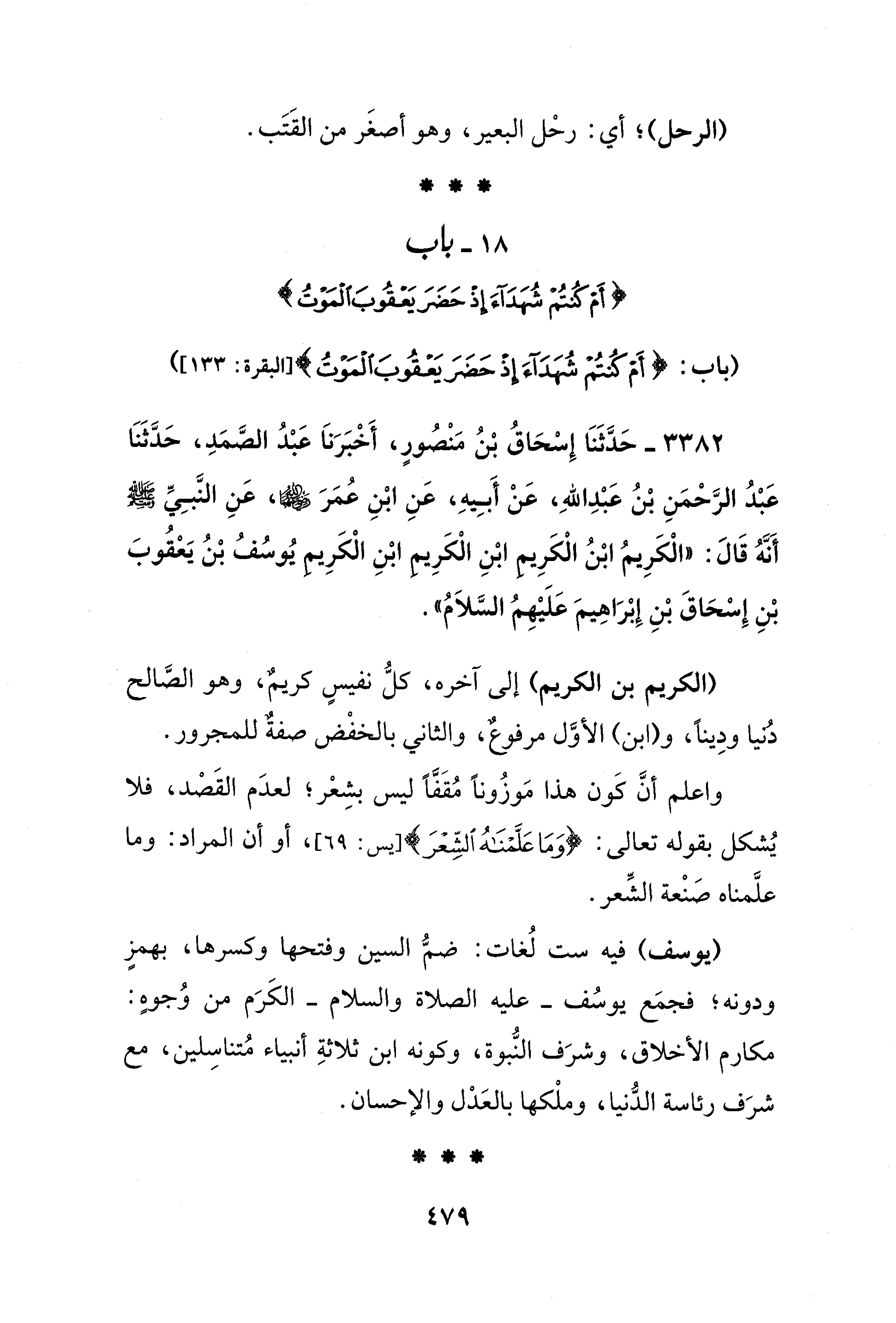 18 - باب {أَمْ كُنْتُمْ شُهَدَاءَ إِذْ حَضَرَ يَعْقُوبَ الْمَوْتُ}