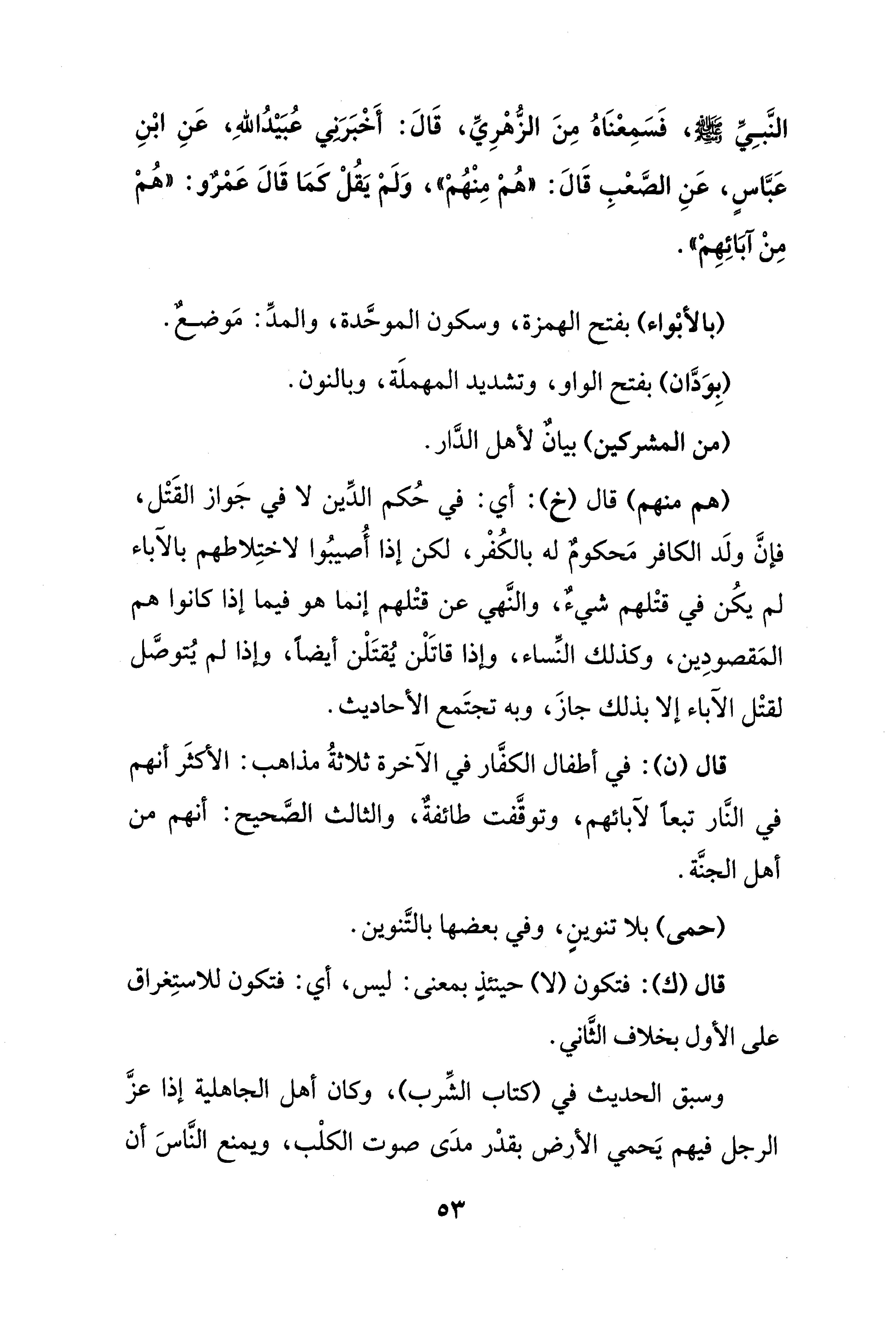 النَّبِيِّ - صلى الله عليه وسلم -، فَسَمِعْنَاهُ مِنَ الزُّهْرِيِّ، قَالَ: أَخْبَرَنِي عُبَيْدُ اللهِ، عَنِ ابْنِ عَبَّاسٍ، عَنِ الصَّعْبِ قَالَ: "هُمْ مِنْهُمْ"، وَلَمْ يَقُلْ كَمَا قَالَ عَمْرٌو: "هُمْ مِنْ آبَائِهِمْ".